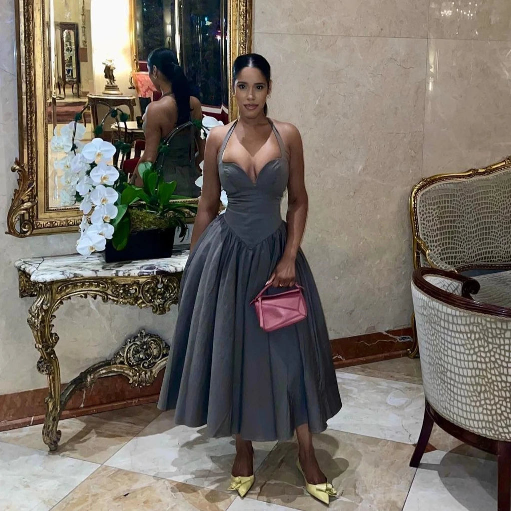 Women's Fit and Flare Halter Bodycon Party Long Casual Dress