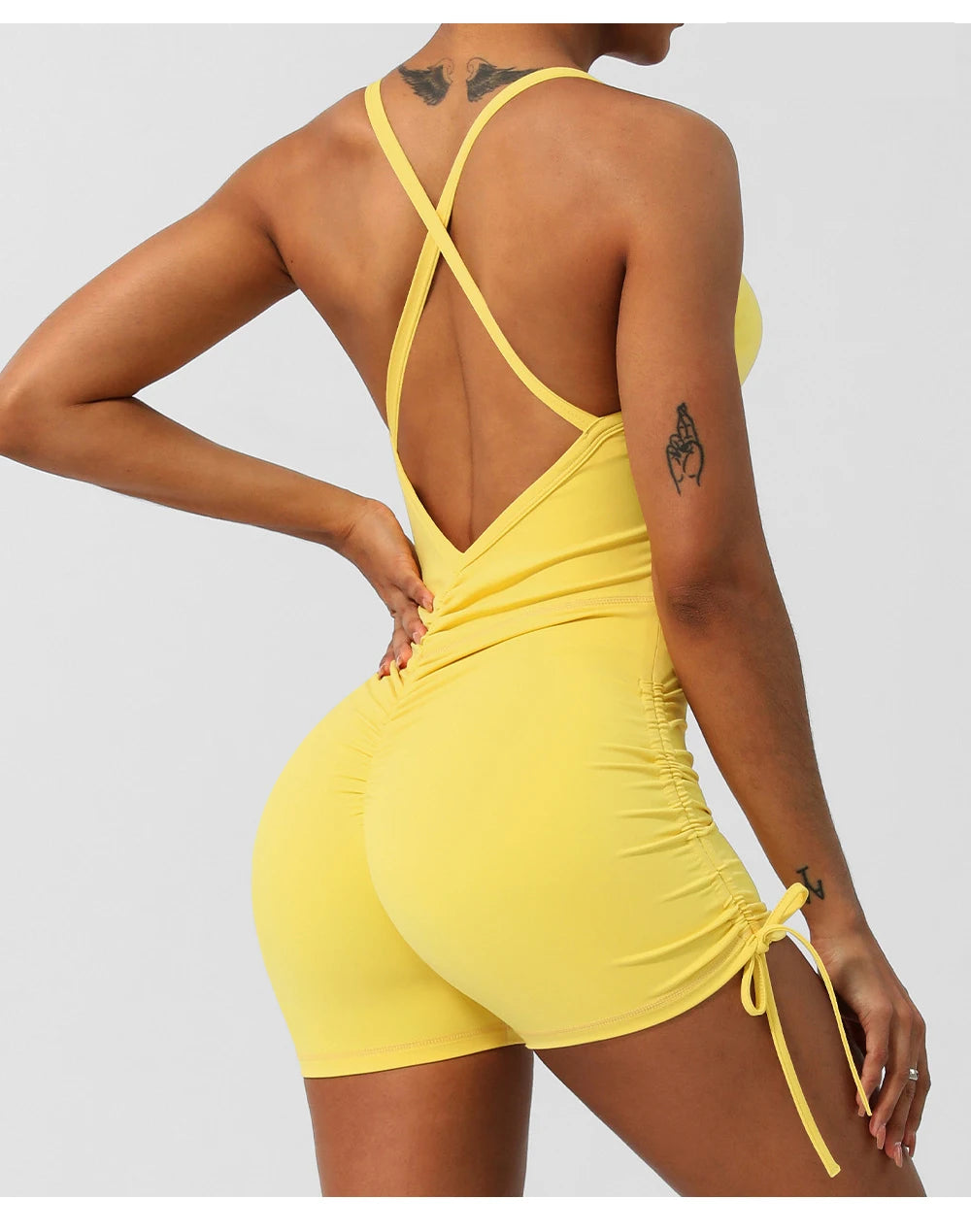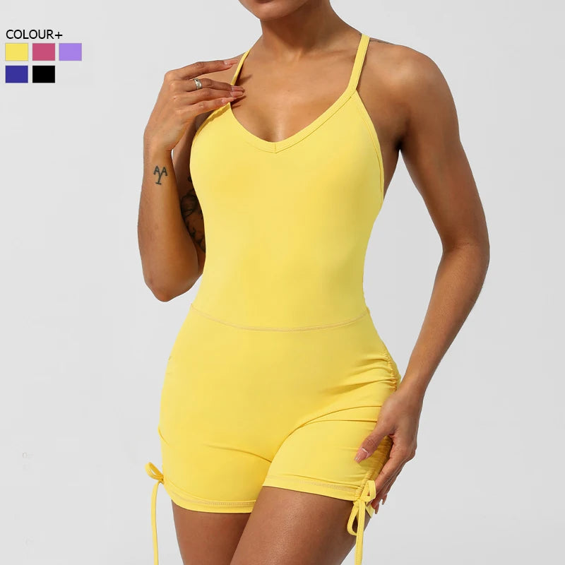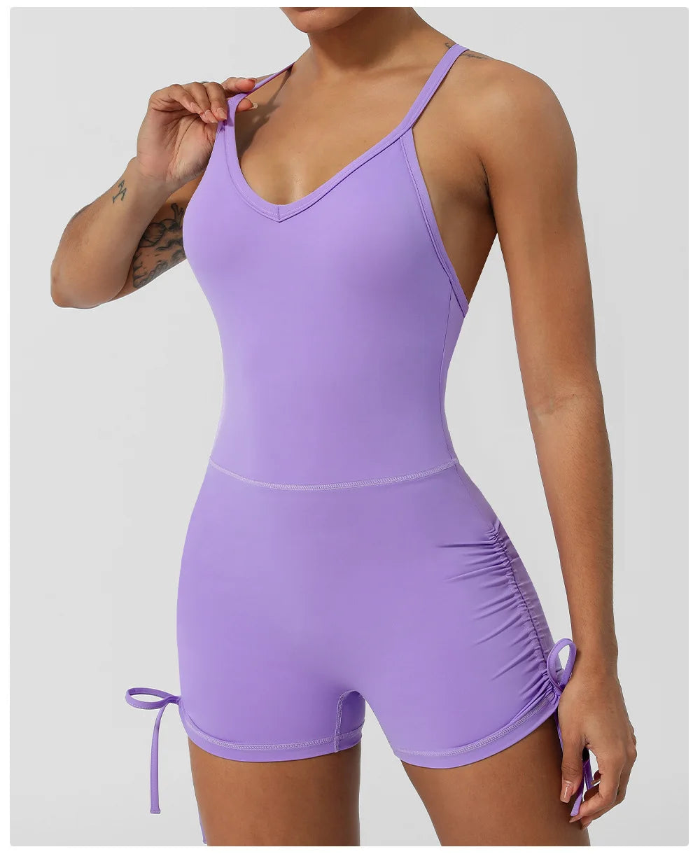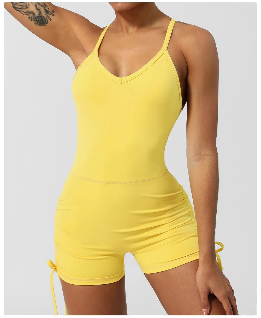 Women's Fitness Yoga Set One Piece Gym Jumpsuit Breathable Quick Dry Running Short Sportswear Workout Activewear