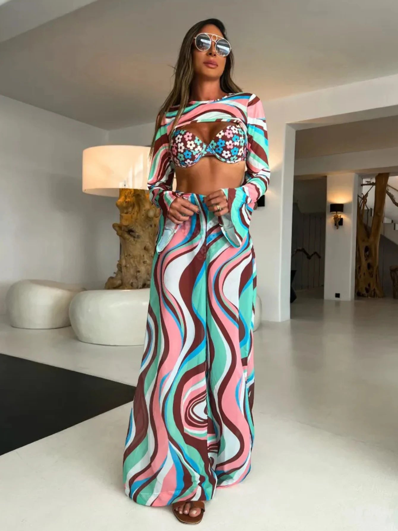 Women's Flowy Jumpsuits Bikini Cover-up Set