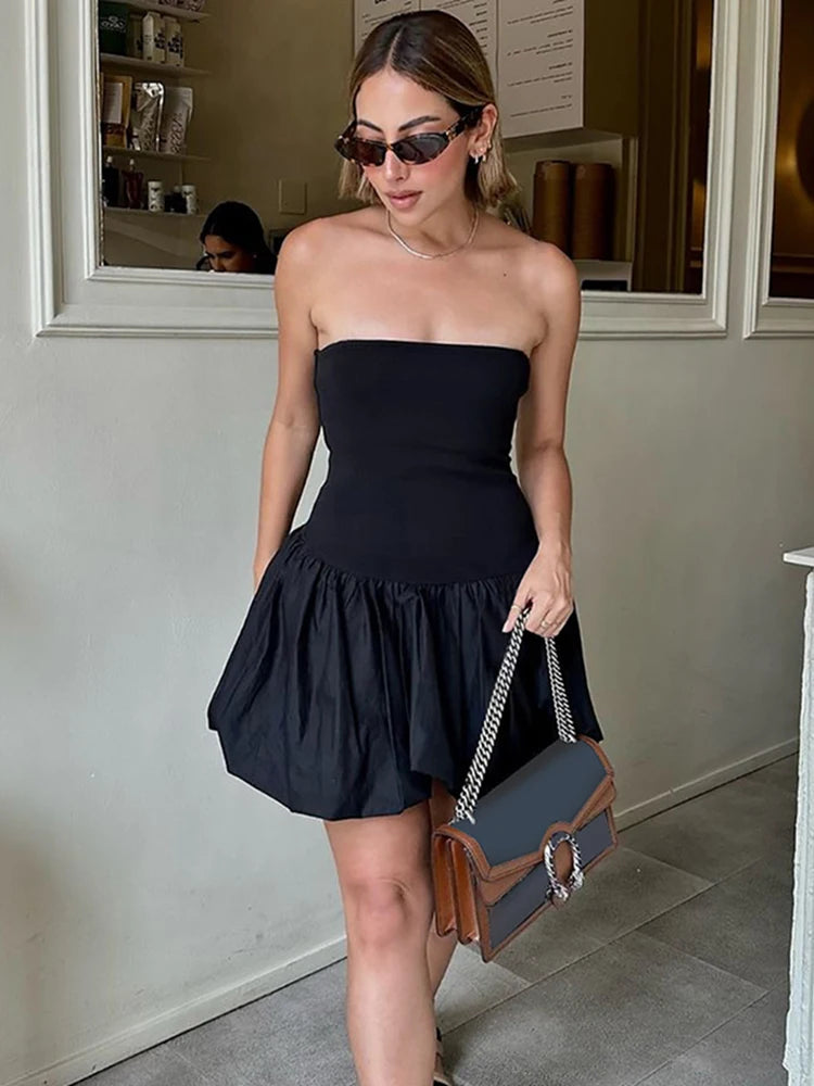 Women's Folds Strapless Backless Mini A-Line Patchwork Sleeveless Dress