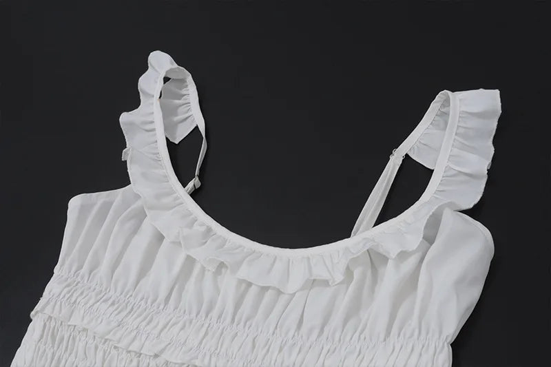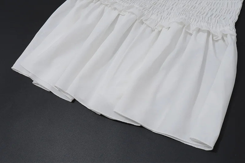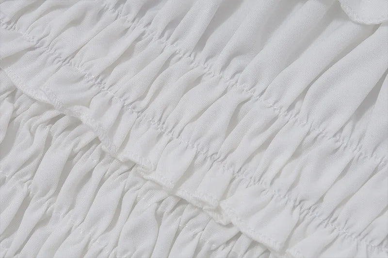 Women's Frill White Mini Backless Ruffled A-Line Pleated Dress