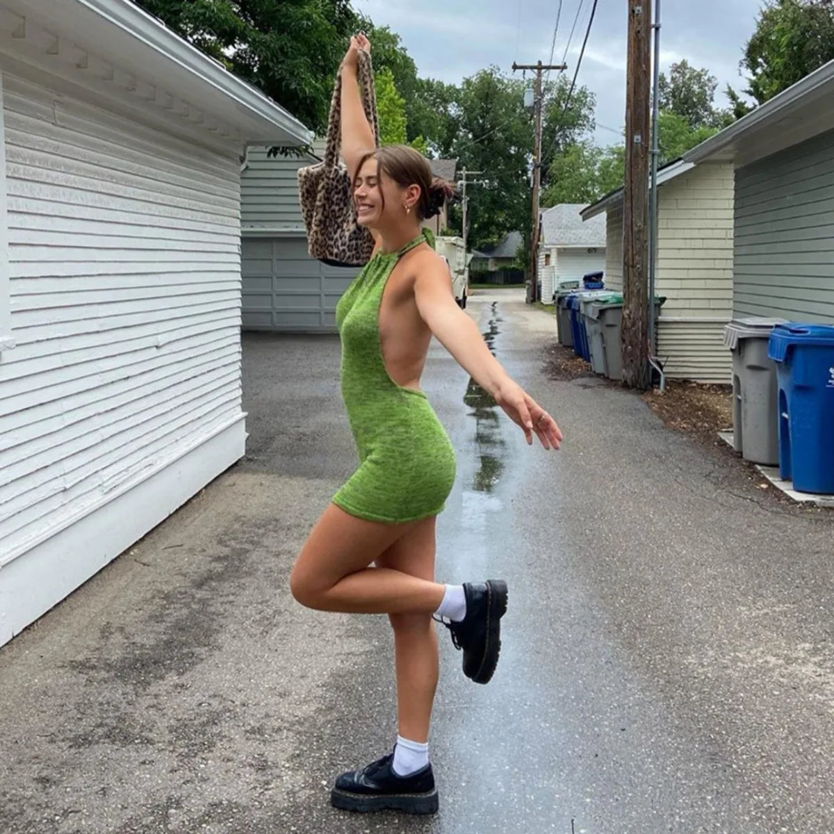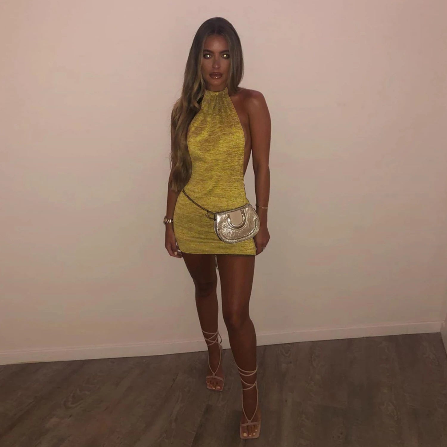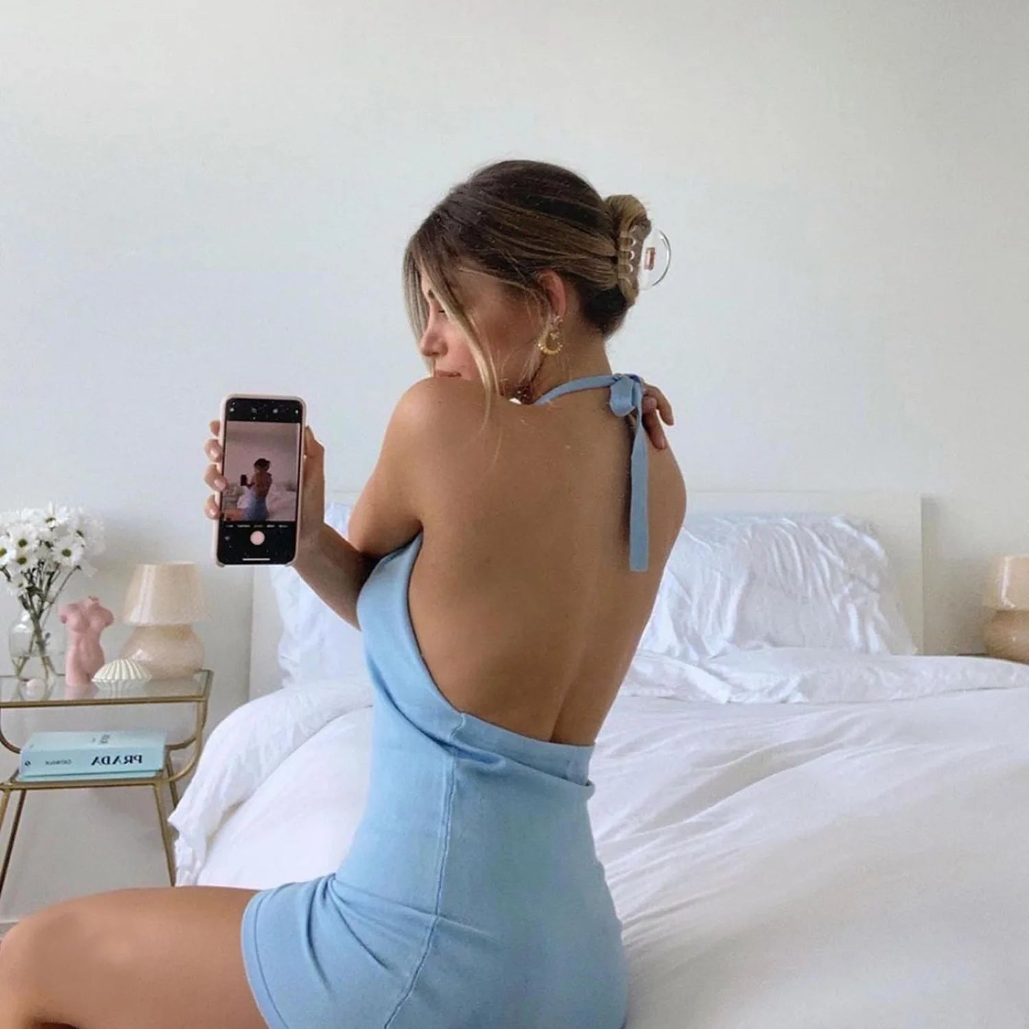 Women's Halter Backless Mini Bodycon Sleeveless Knitted Dress