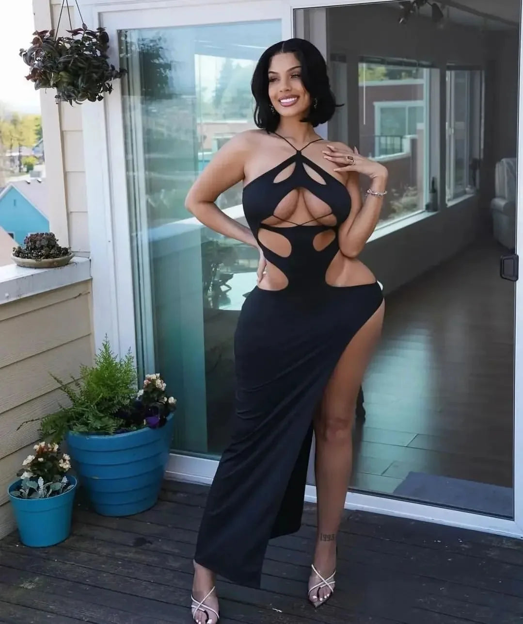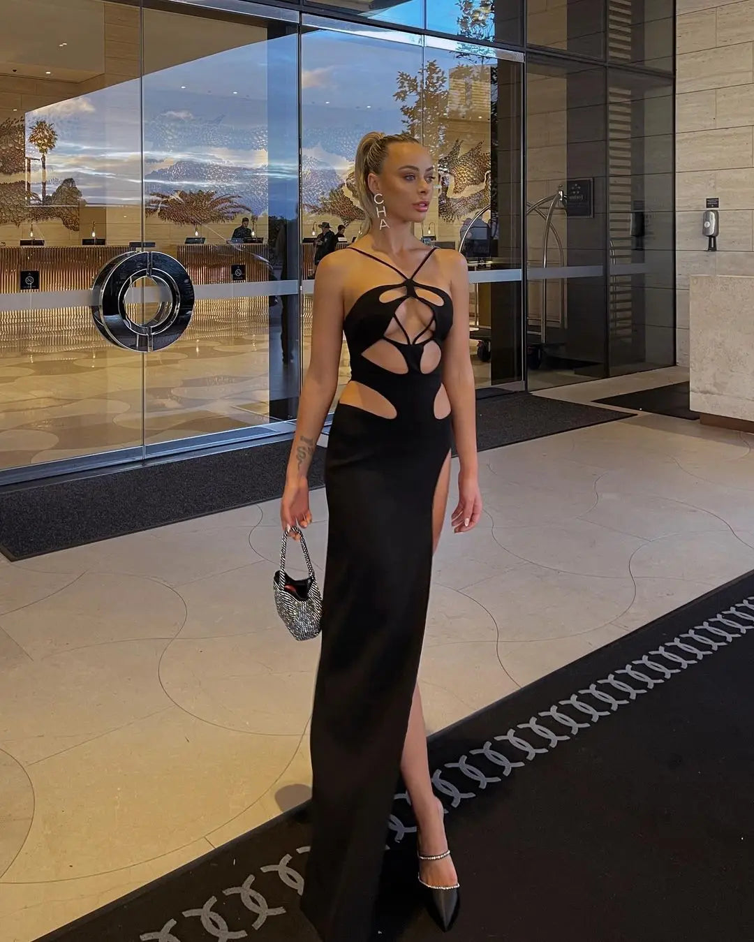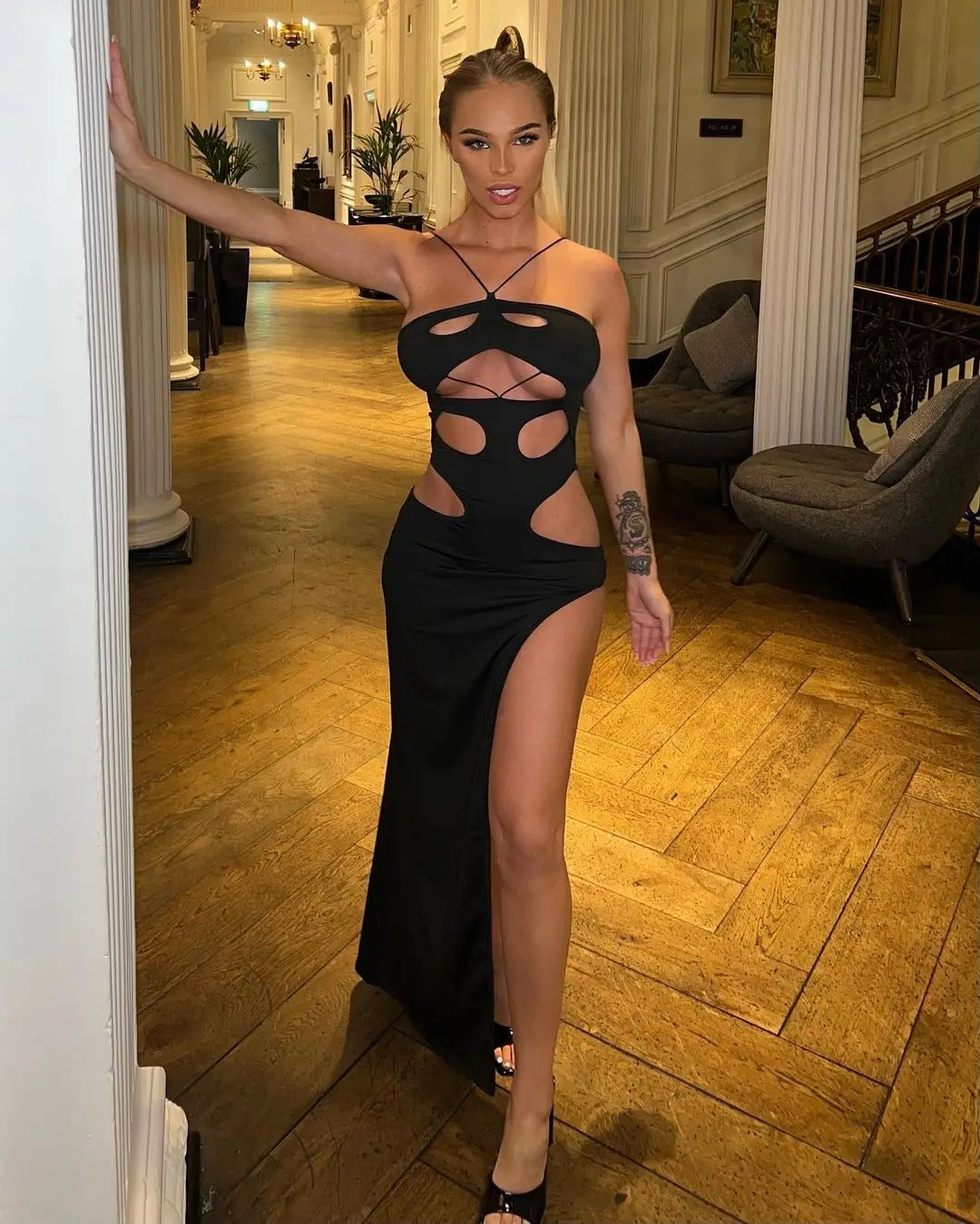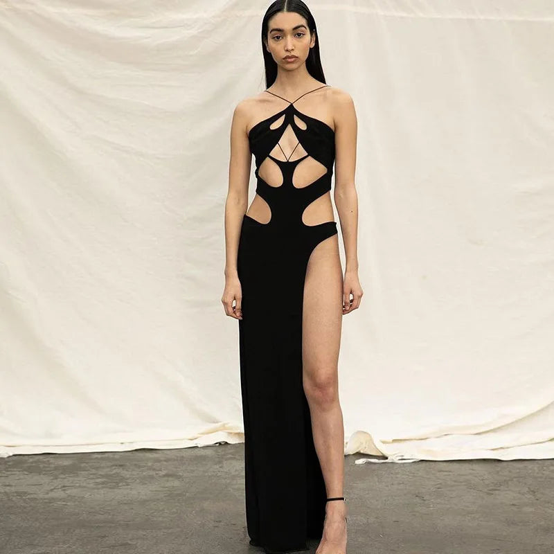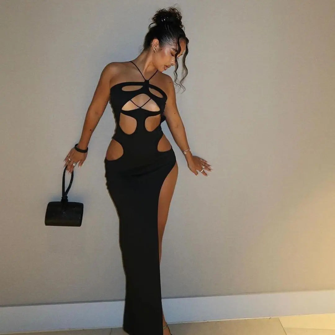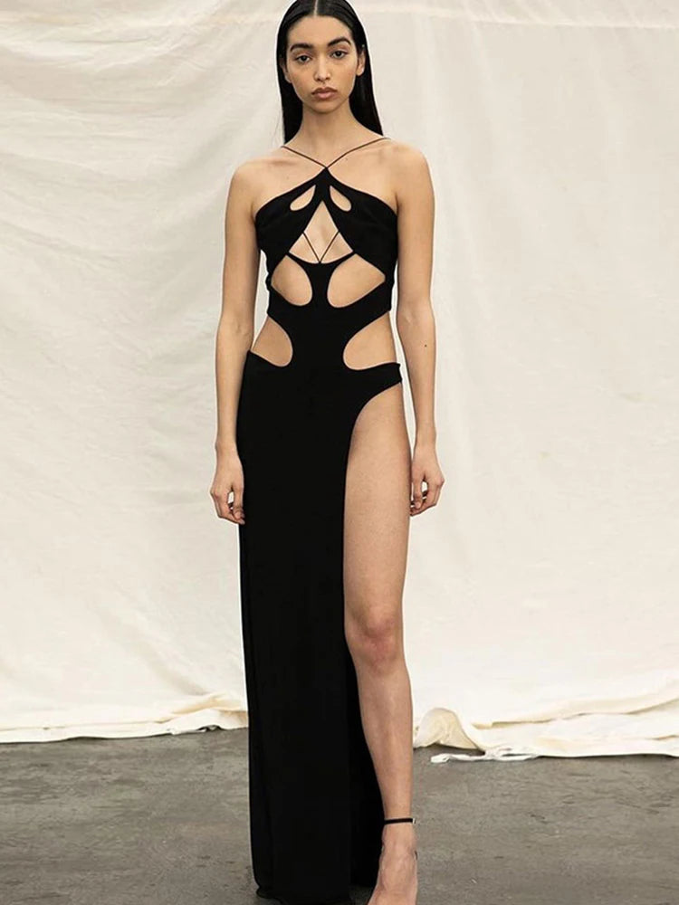 Women's Halter Cut Out High Waist Split Long Backless Maxi Dress