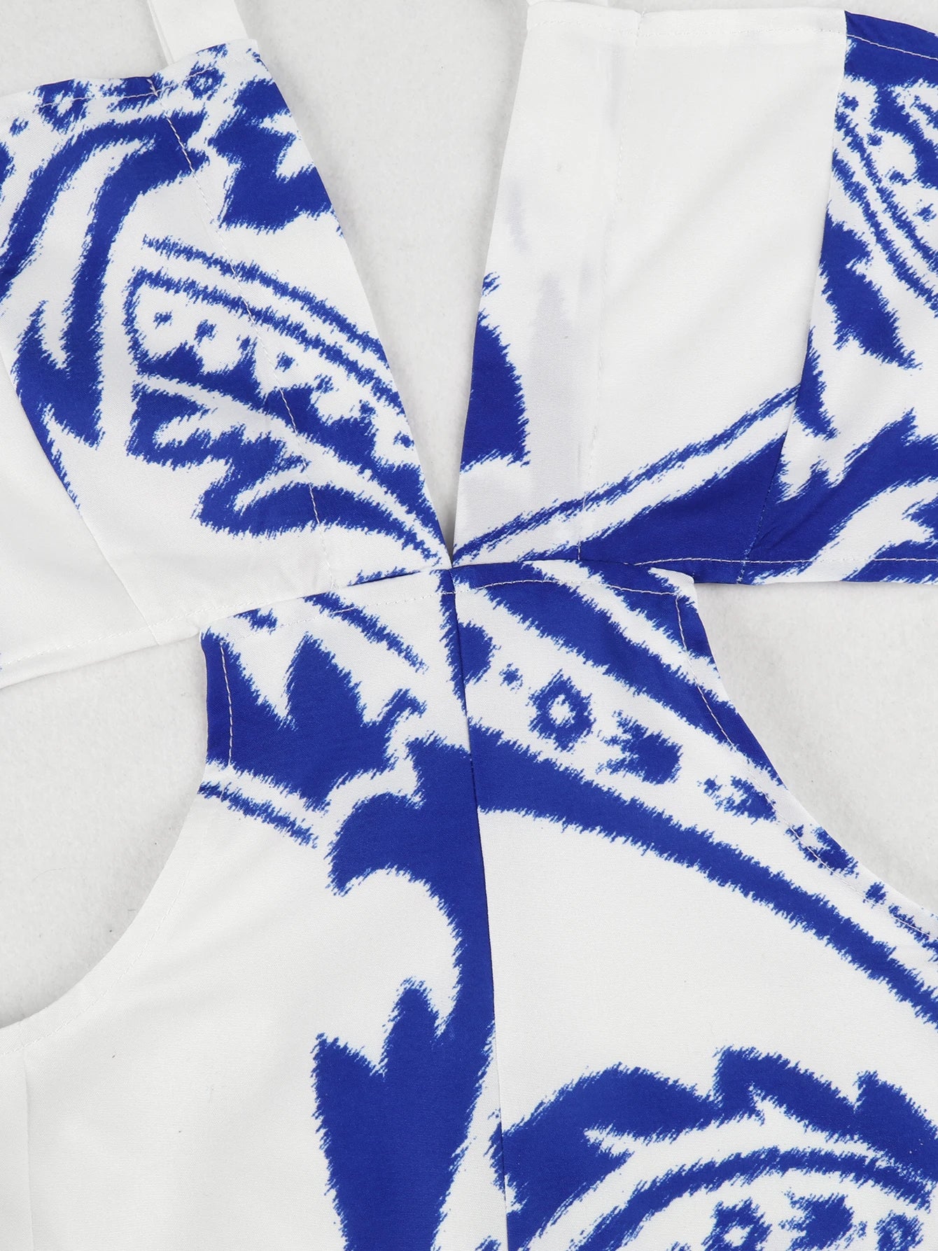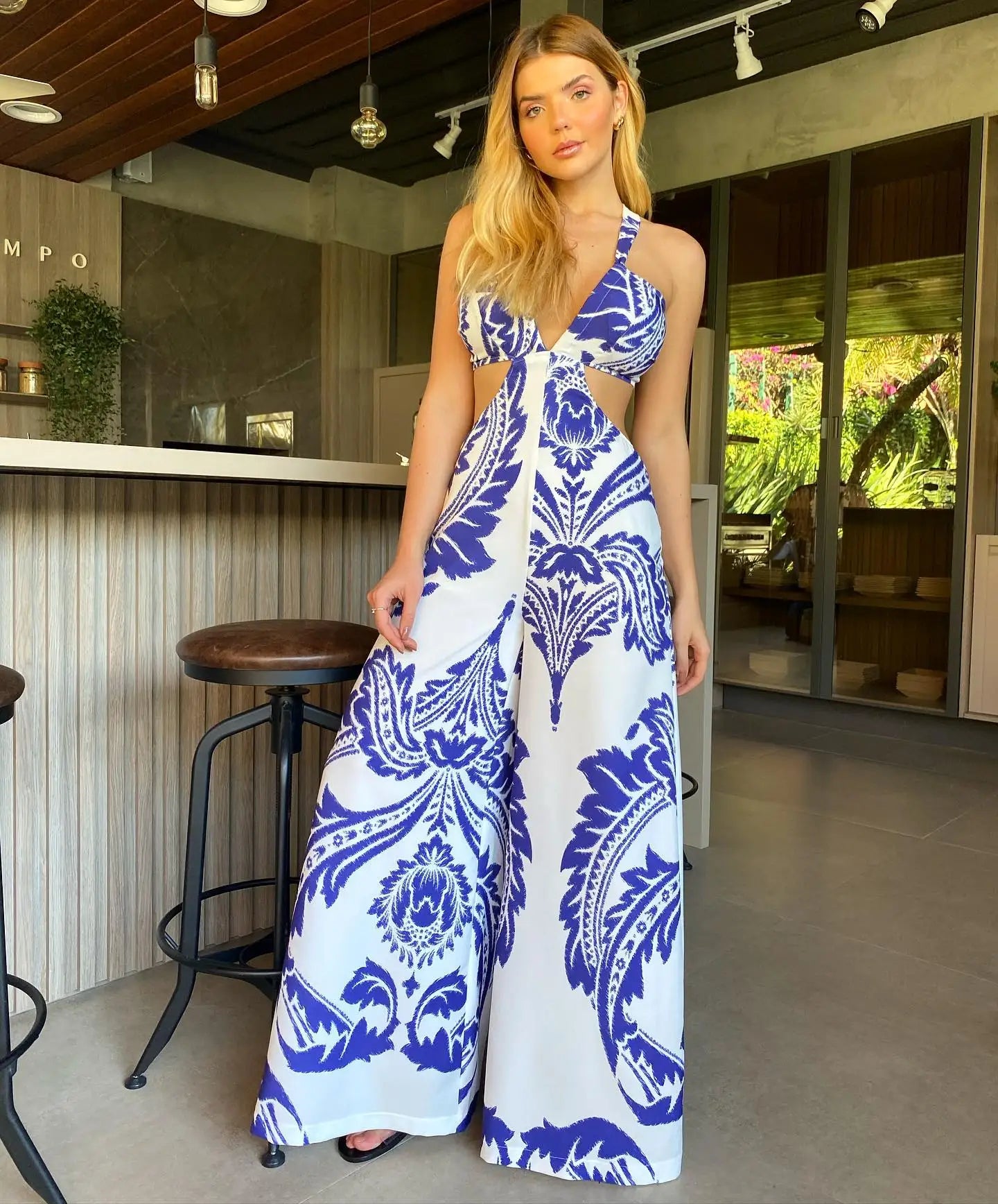 Women's Halter Sleeveless V-neck Waist Wide Leg Long Jumpsuit