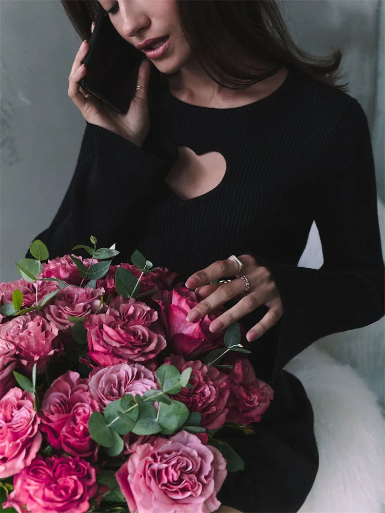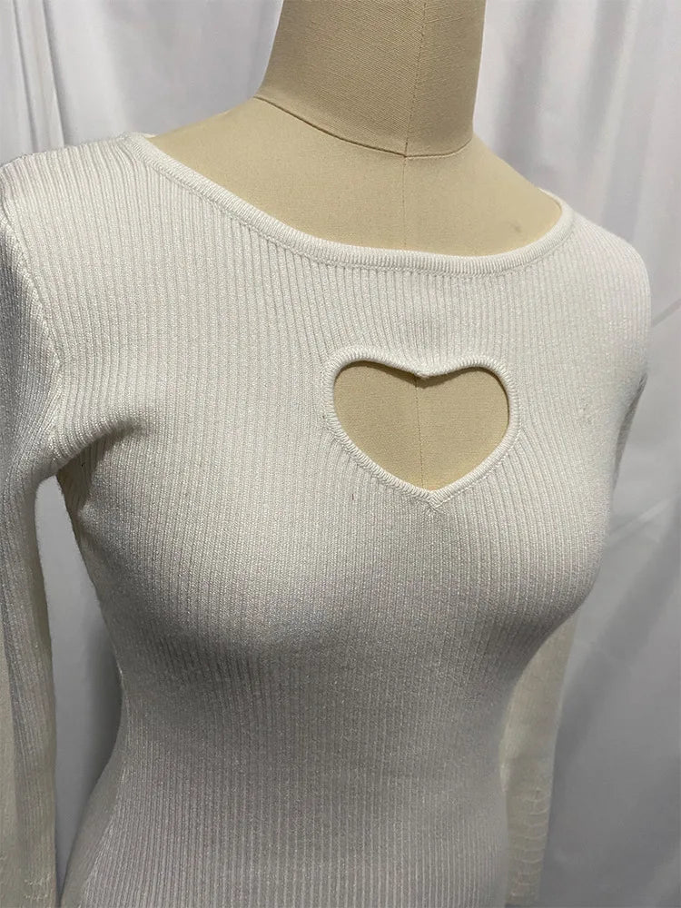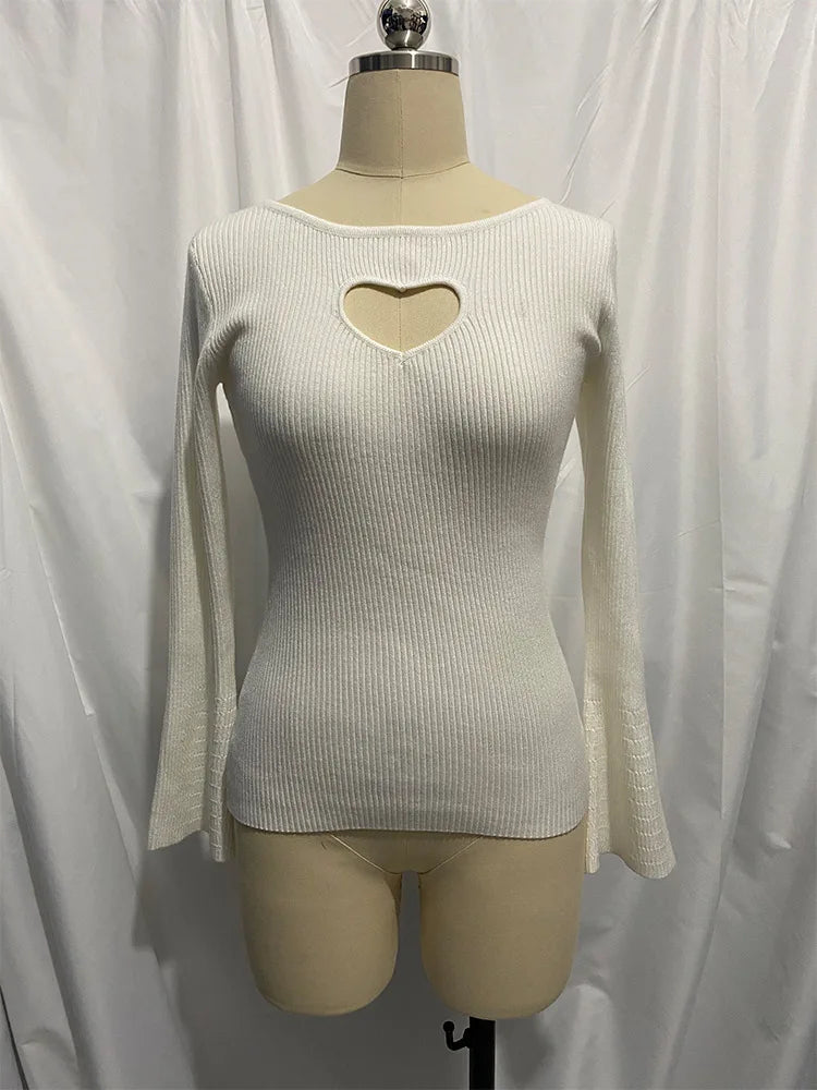 Women's Heart Cut Out Ribbed Knit Flare Sleeve Pullover Top