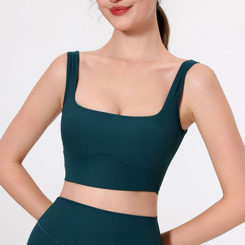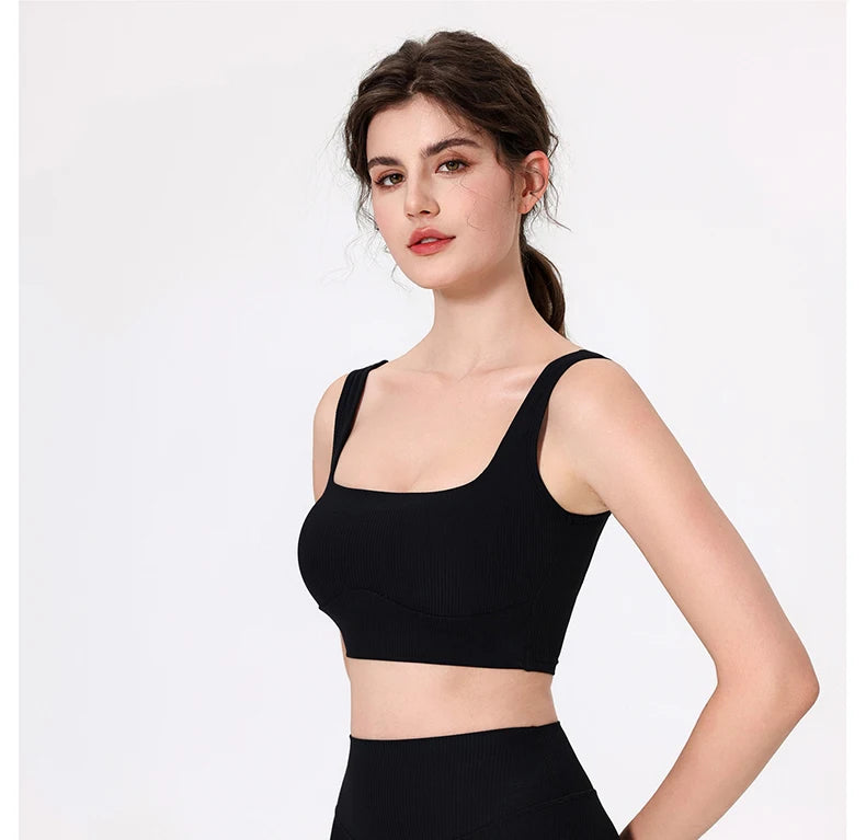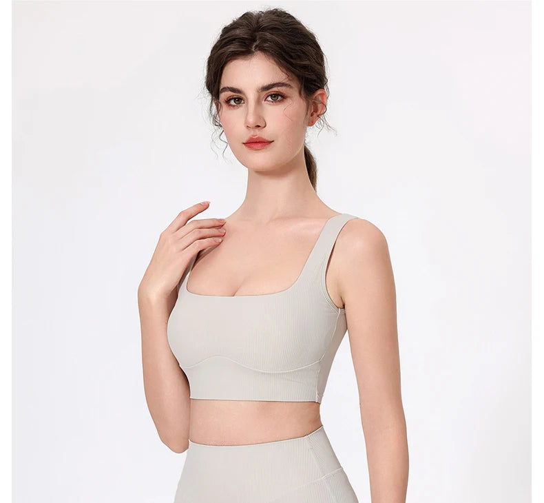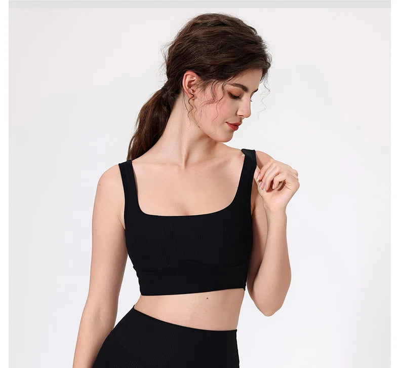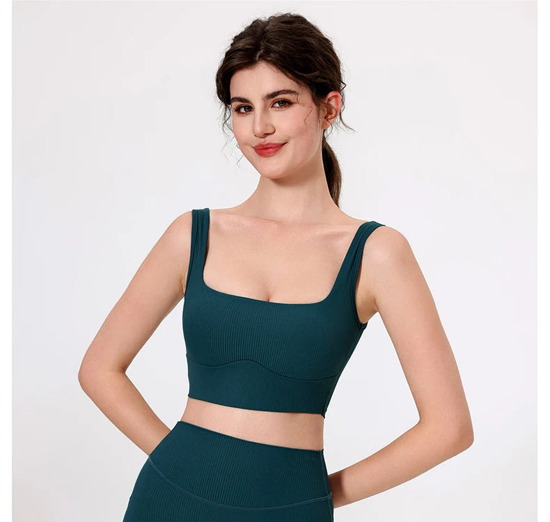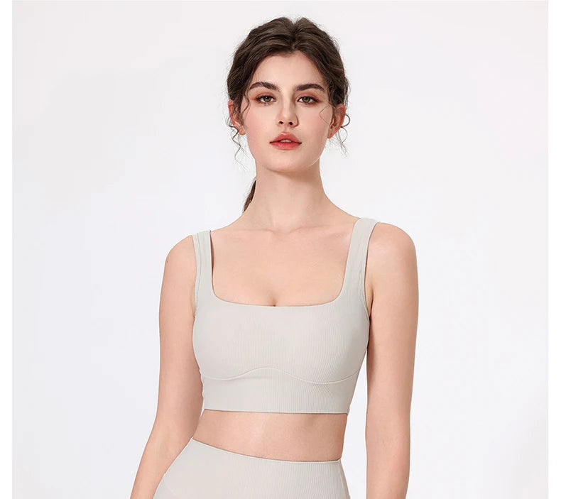 Women's High Impact Fitness Yoga Bra Soft Sports Underwear Square Neckline Gym Crop Top Breathable Workout Top