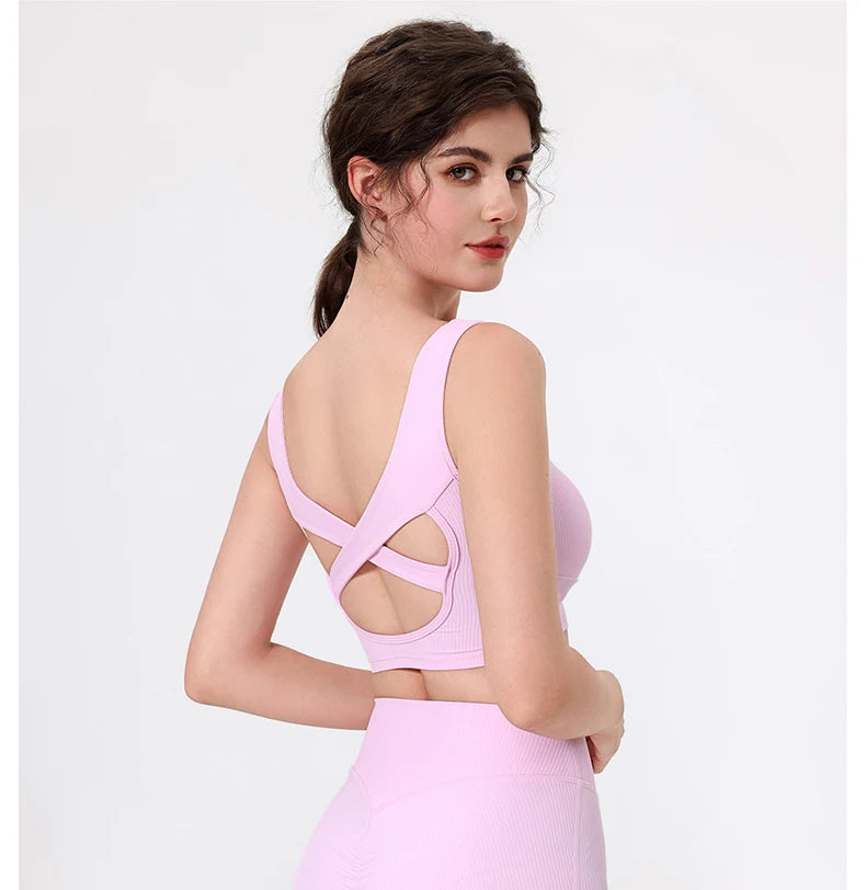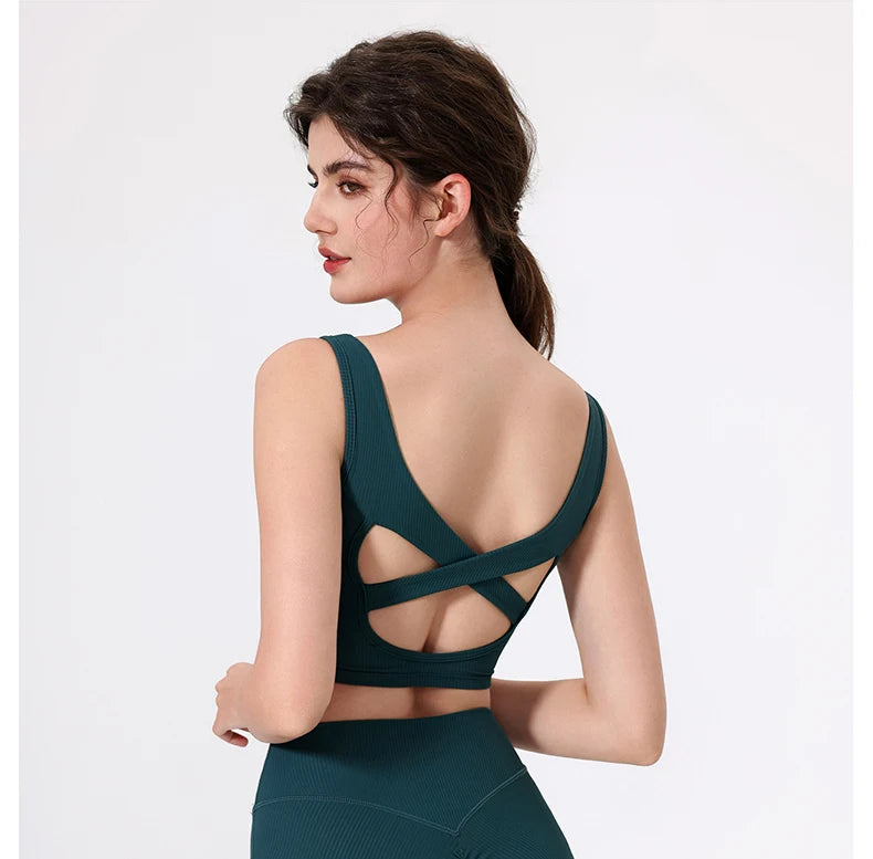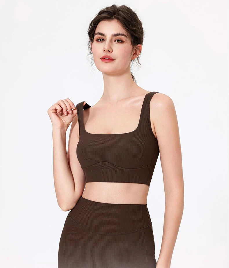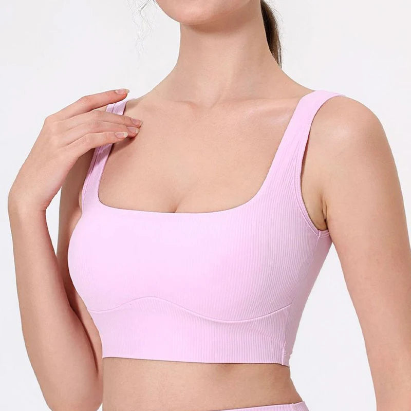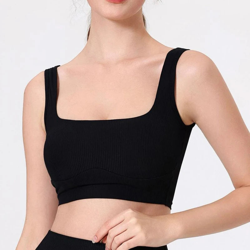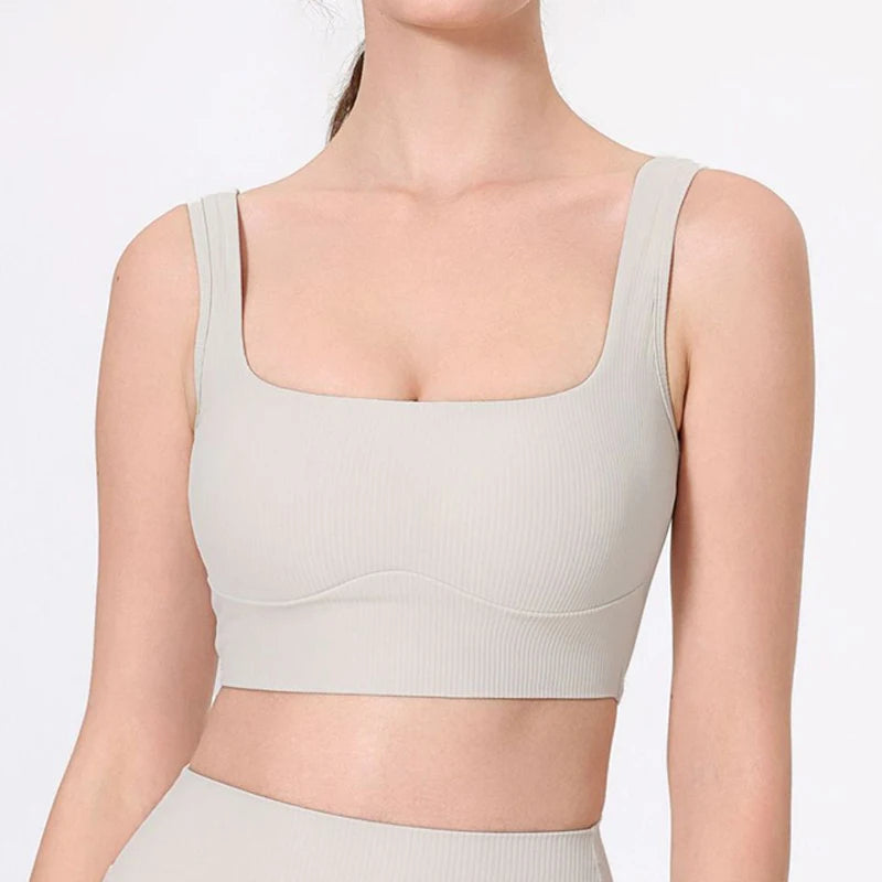 Women's High Impact Fitness Yoga Bra Soft Sports Underwear Square Neckline Gym Crop Top Breathable Workout Top