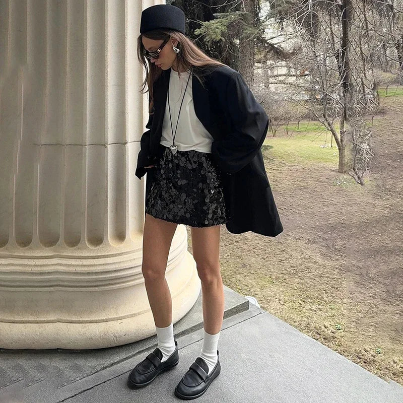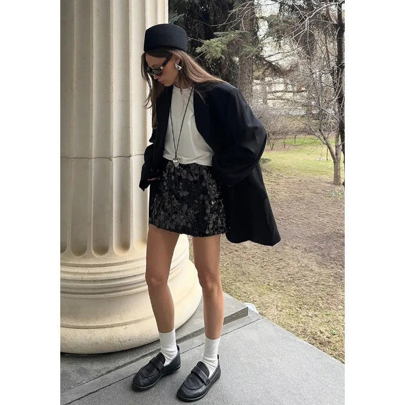 Women's High Waisted Sequins Skirt - Hip Wrap Mini Splice Glitter Skirt
