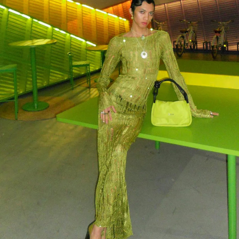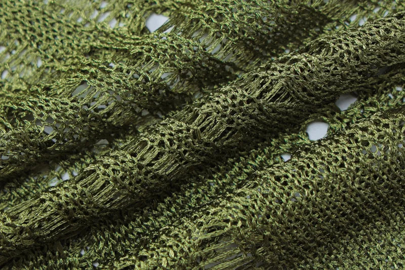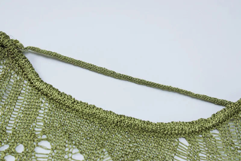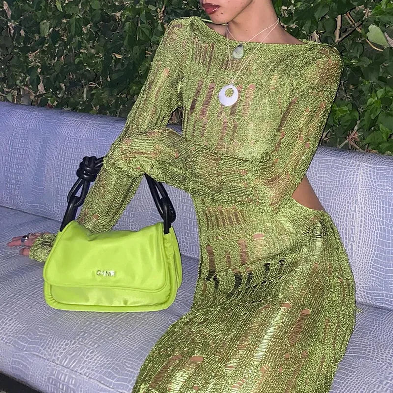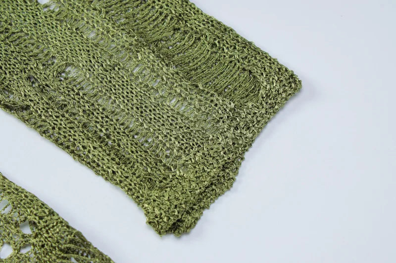 Women's Hollow Out Knitted Open Back Maxi Elegant Long Sleeve Sheer Dress