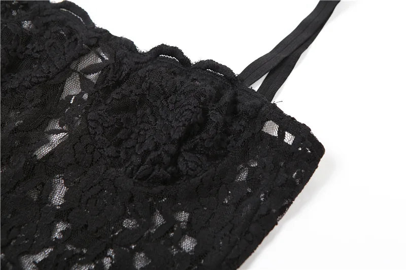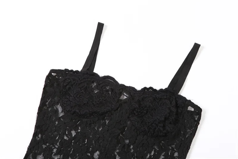Women's Hollow Out Transparent Lace Maxi Dress - Split Backless Sleeveless Dress Outfit