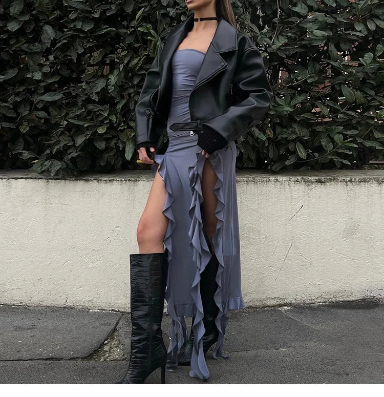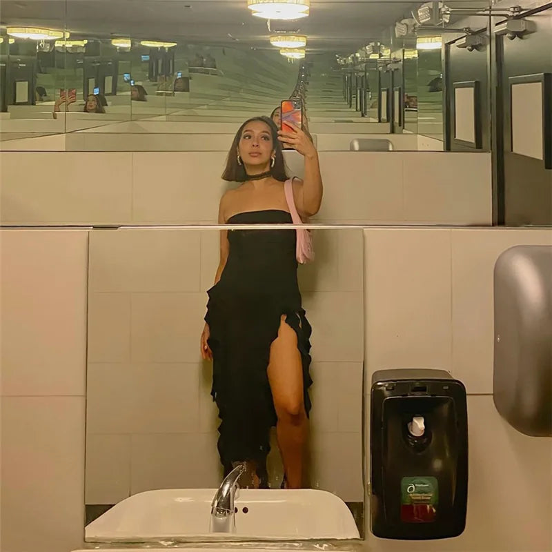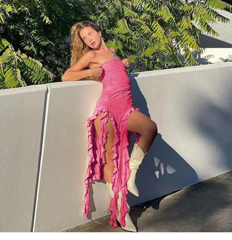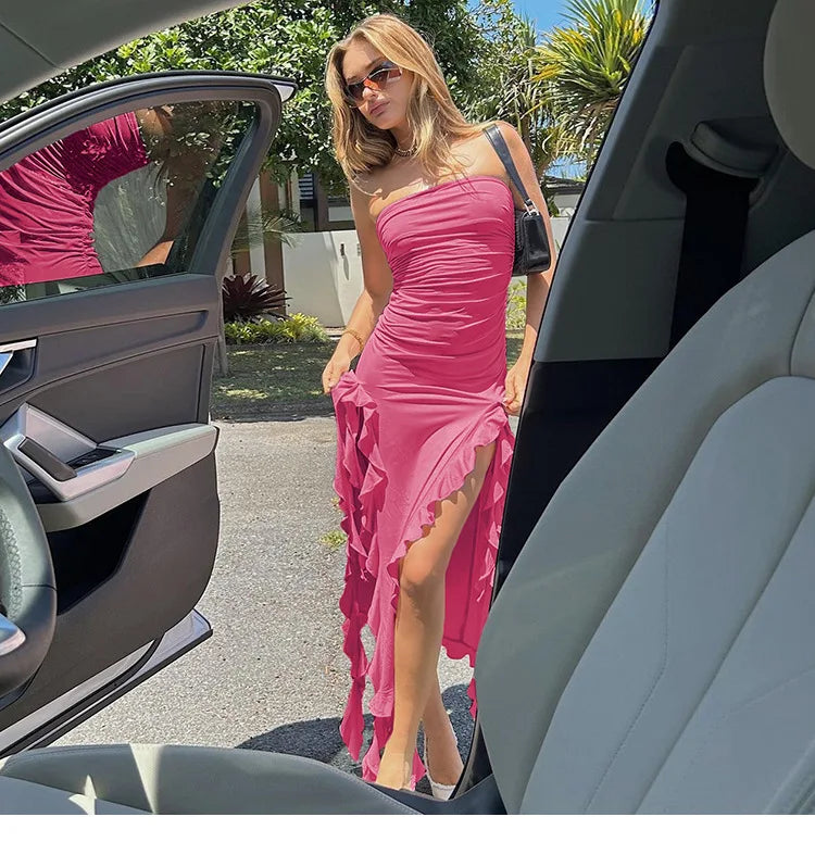 Women's Irregular Ruffle Off Shoulder Backless Ruched Midi Dress