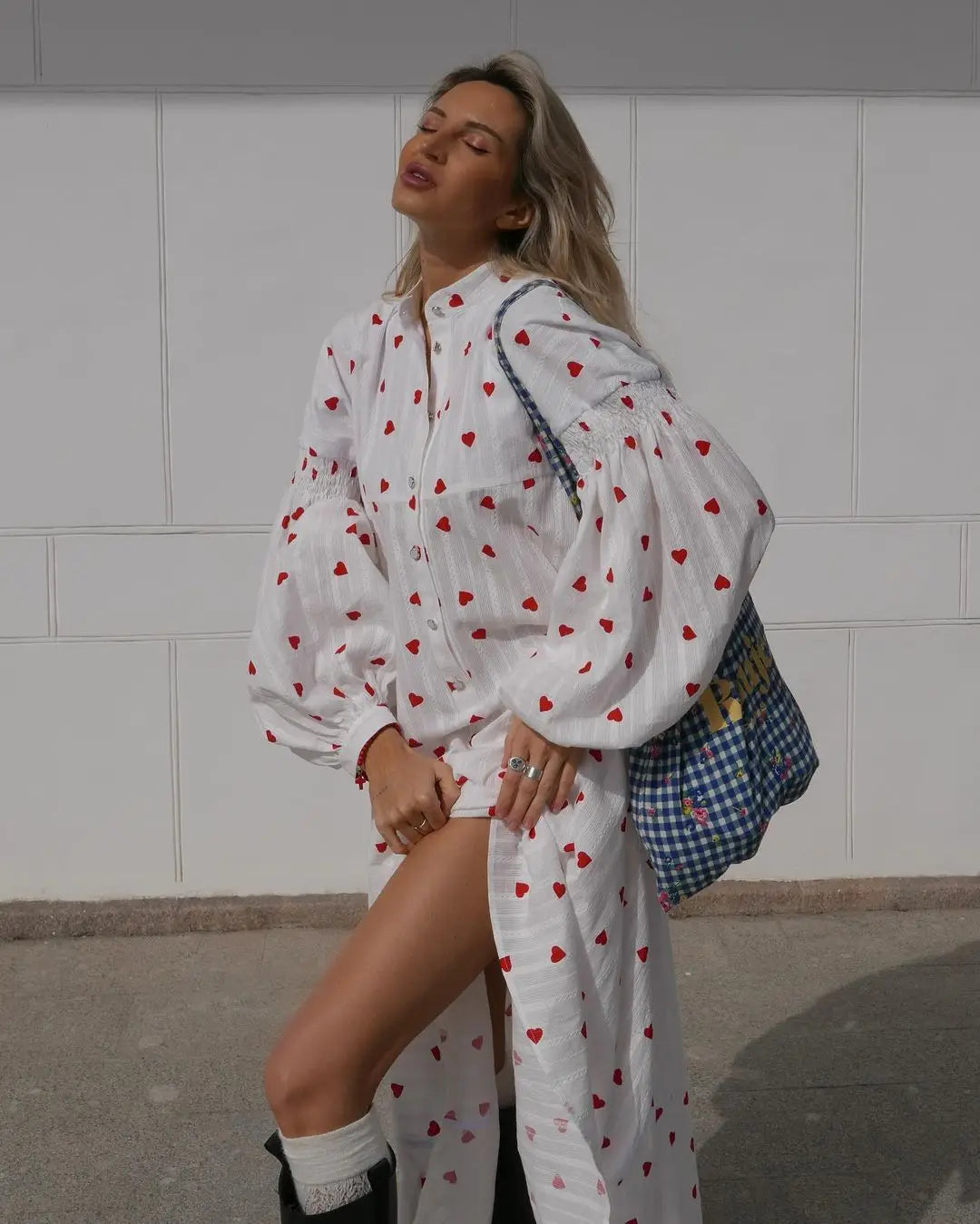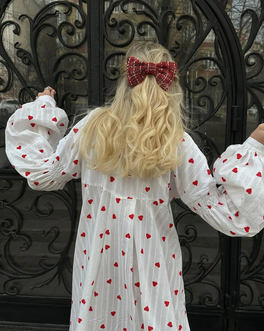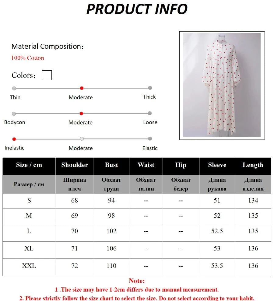 Women's Jacquard Heart Print Long Sleeve Loose Dress