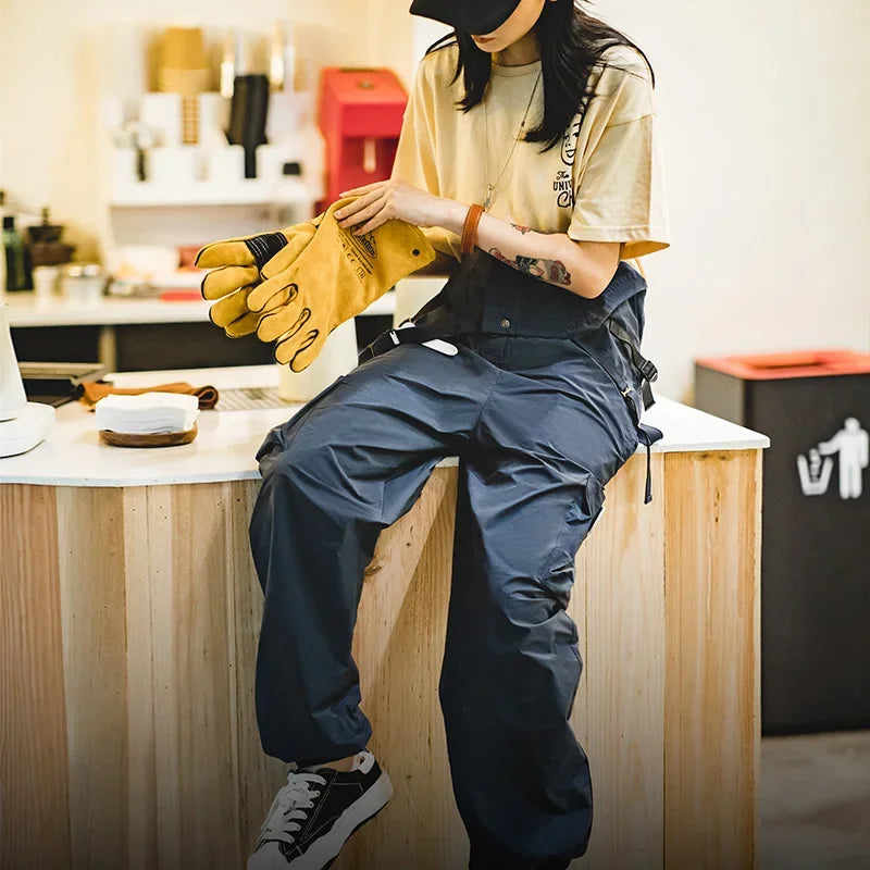 Women's Jumpsuits Retro Overalls Mountain Series Large Pocket Jumpsuit Waterproof Loose Sleeveless Playsuits Cargo Pants