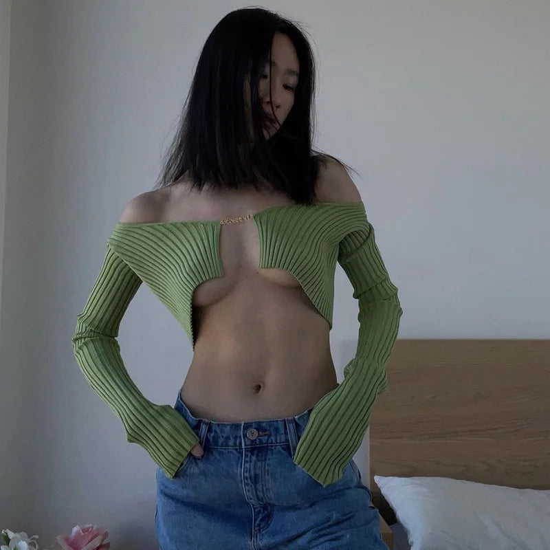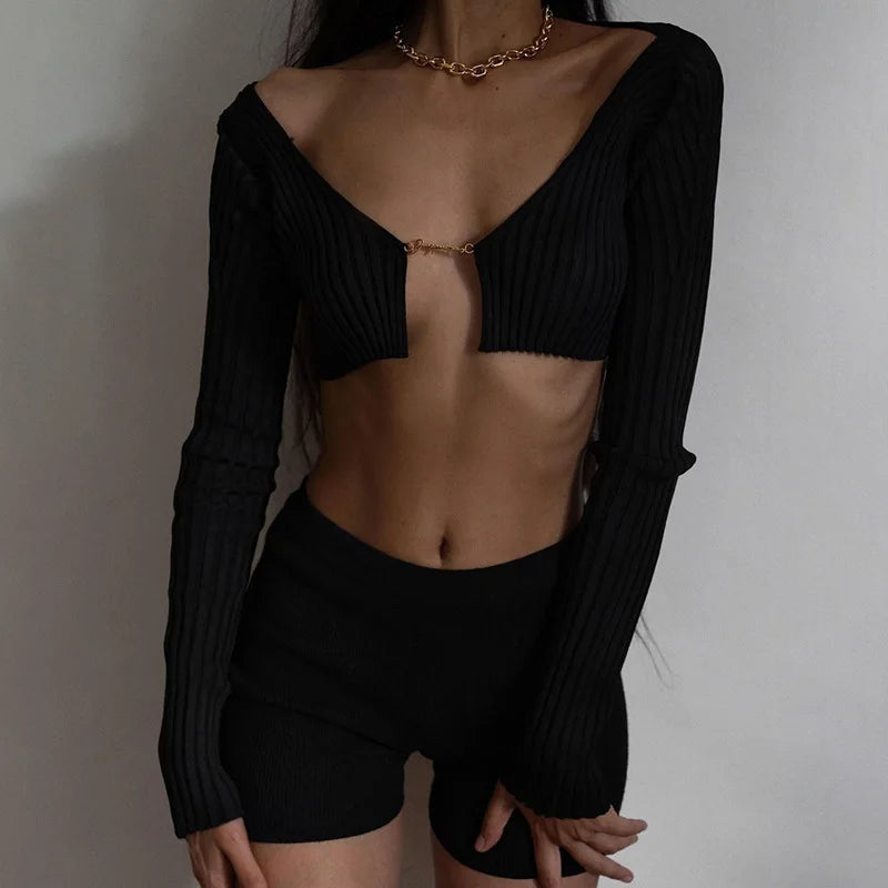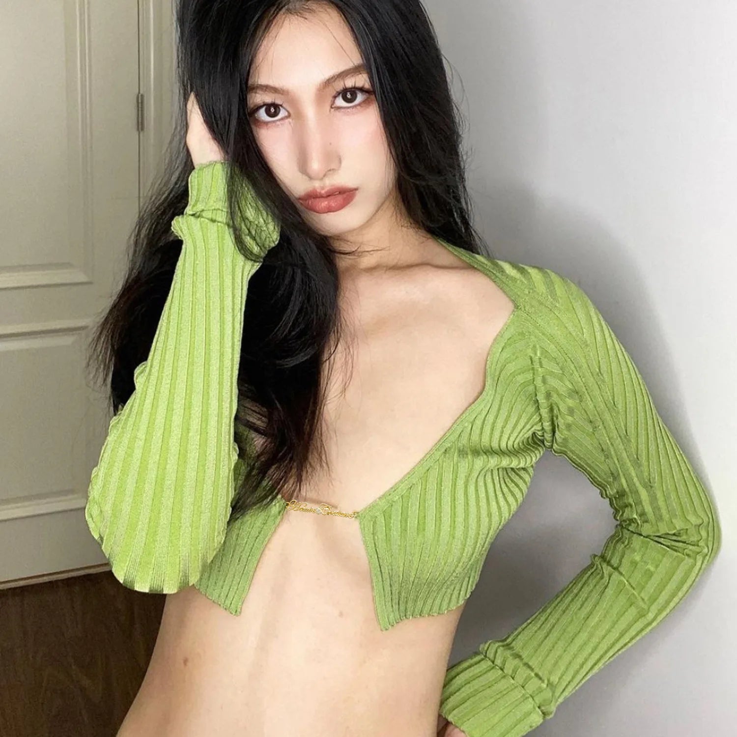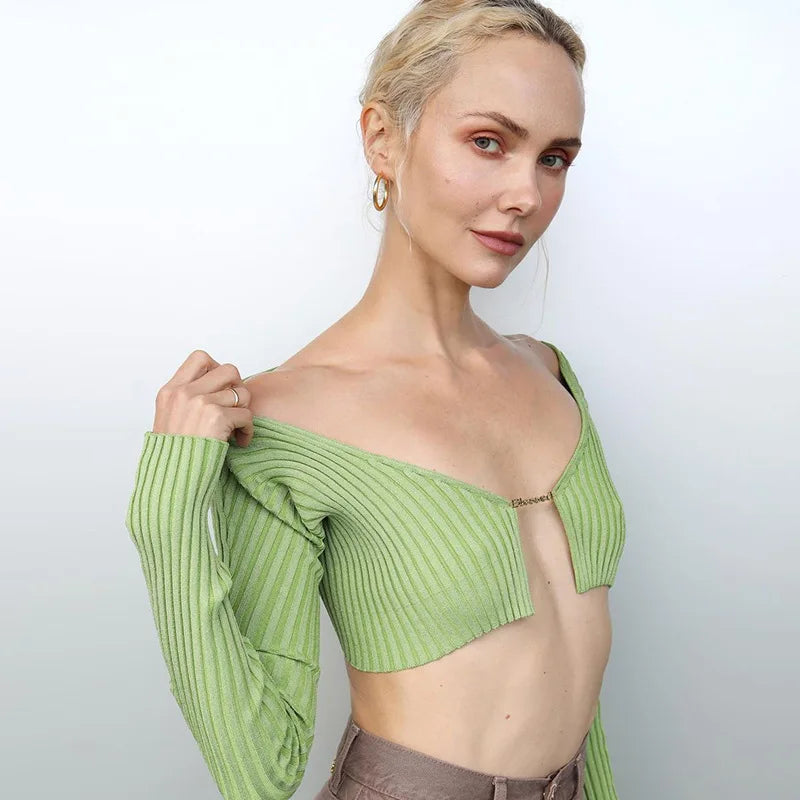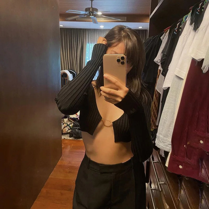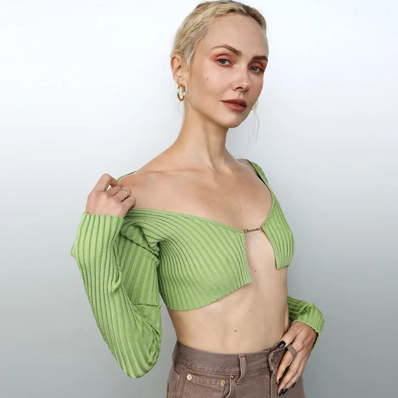 Women's Knitted Cropped Sweater - Long Sleeve Cardigan Pullover Top