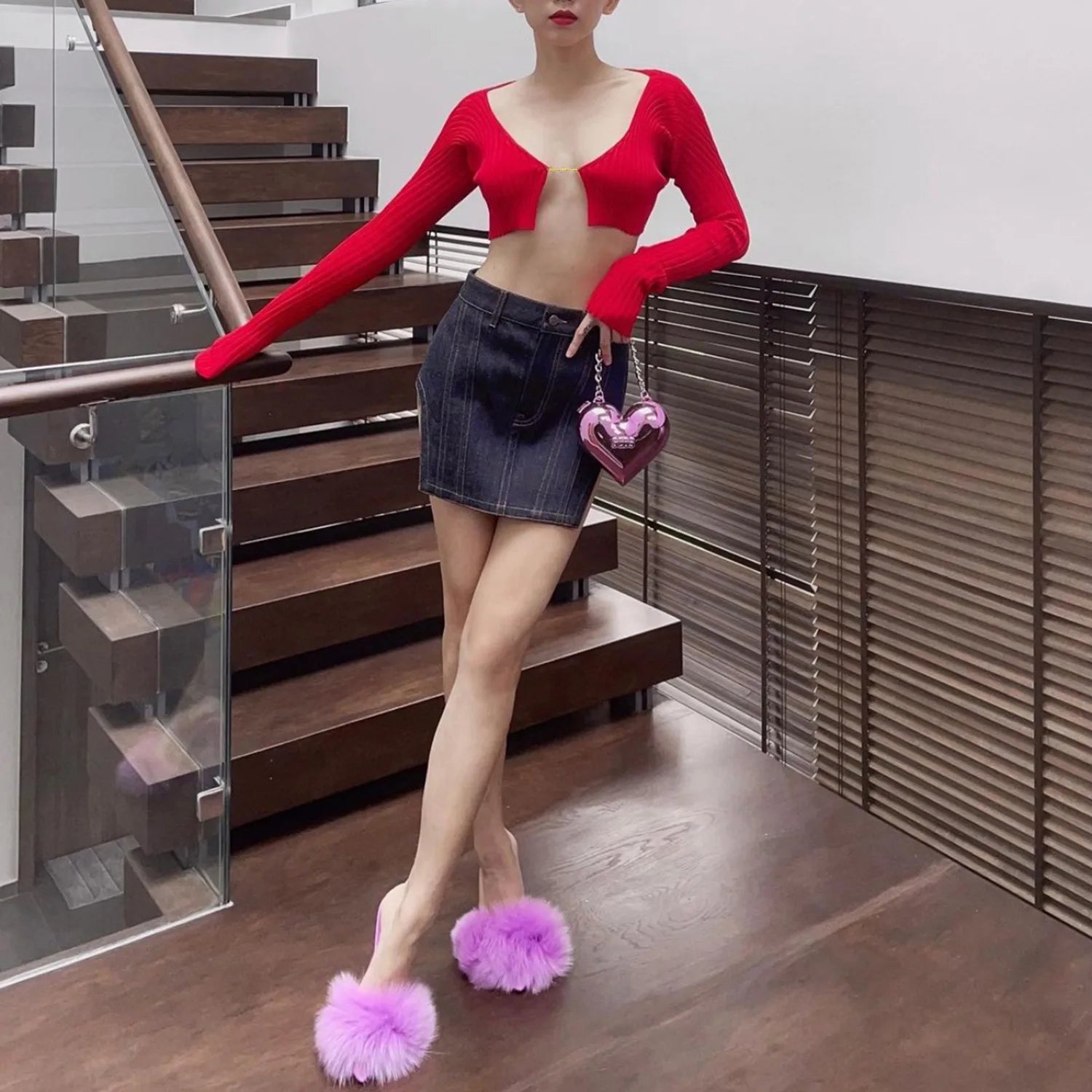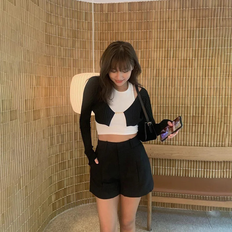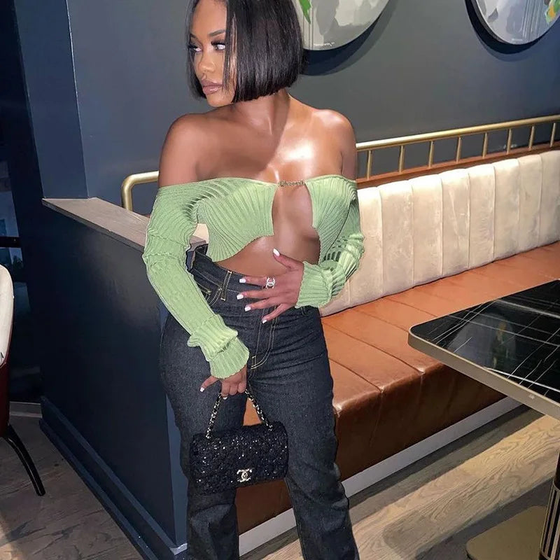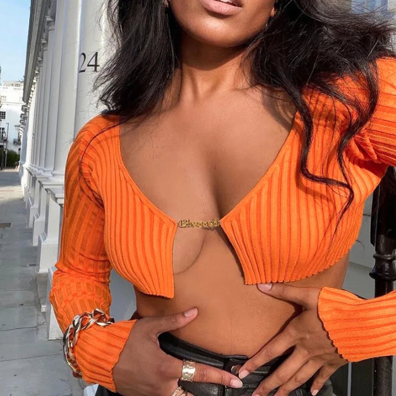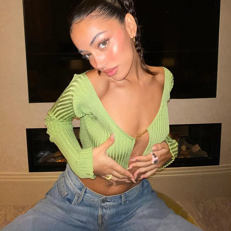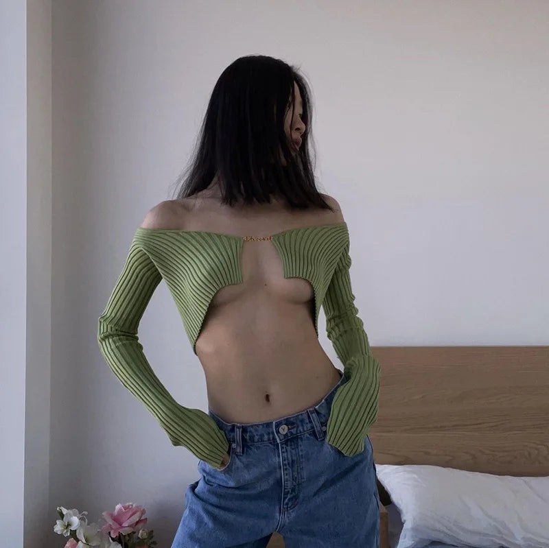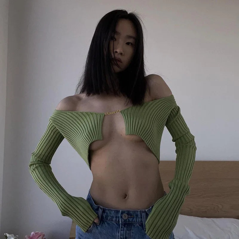 Women's Knitted Cropped Sweater - Long Sleeve Cardigan Pullover Top