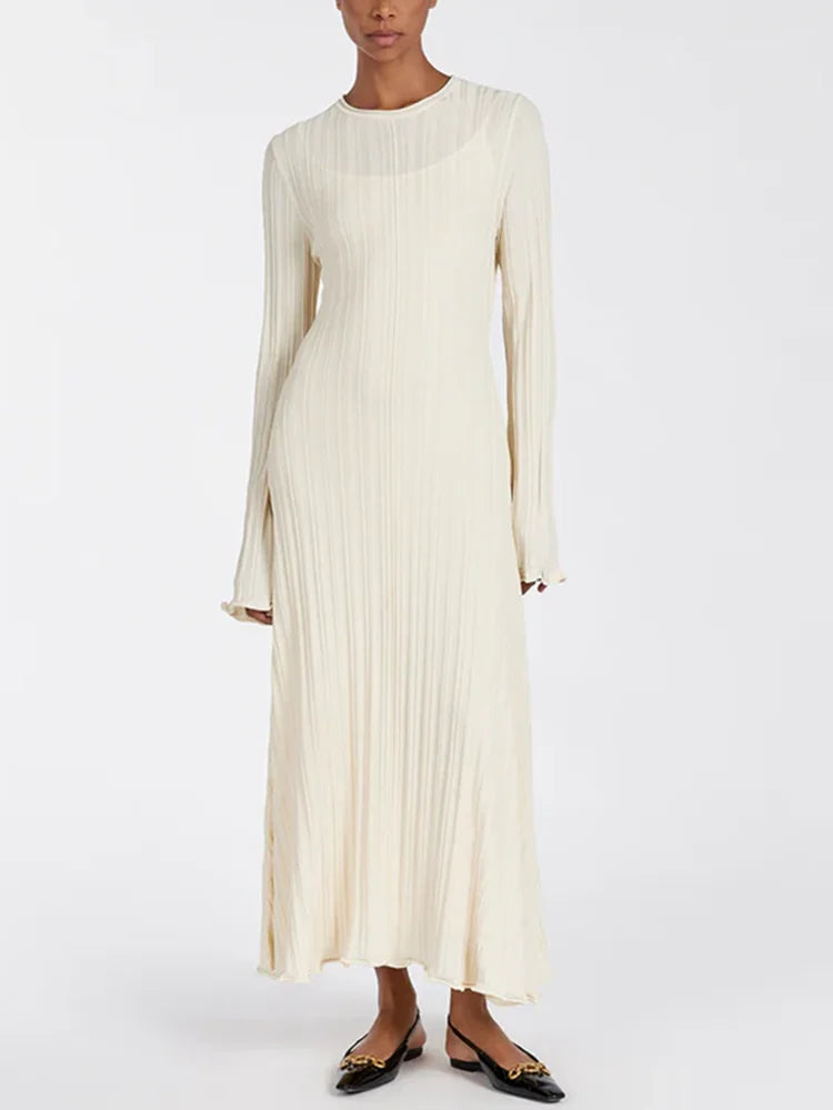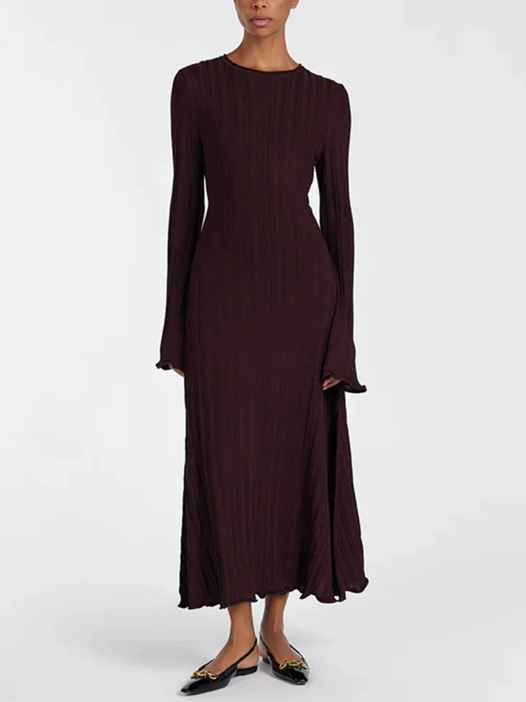 Women's Knitted Long Retro High Waist Rib Sweater Bodycon Dress