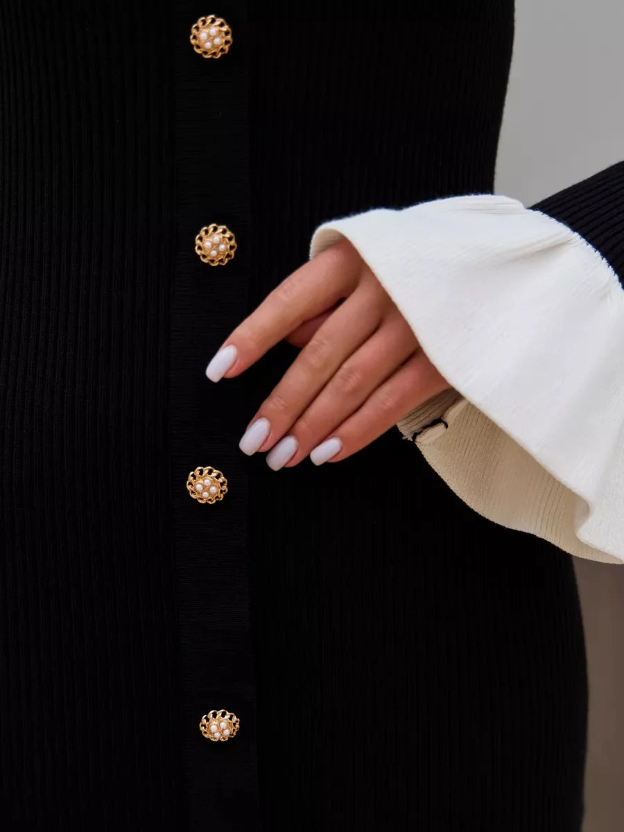 Women's Knitted Long Splice Contrast Colour Bodycon Sweater Elegant Flare Sleeve Dress