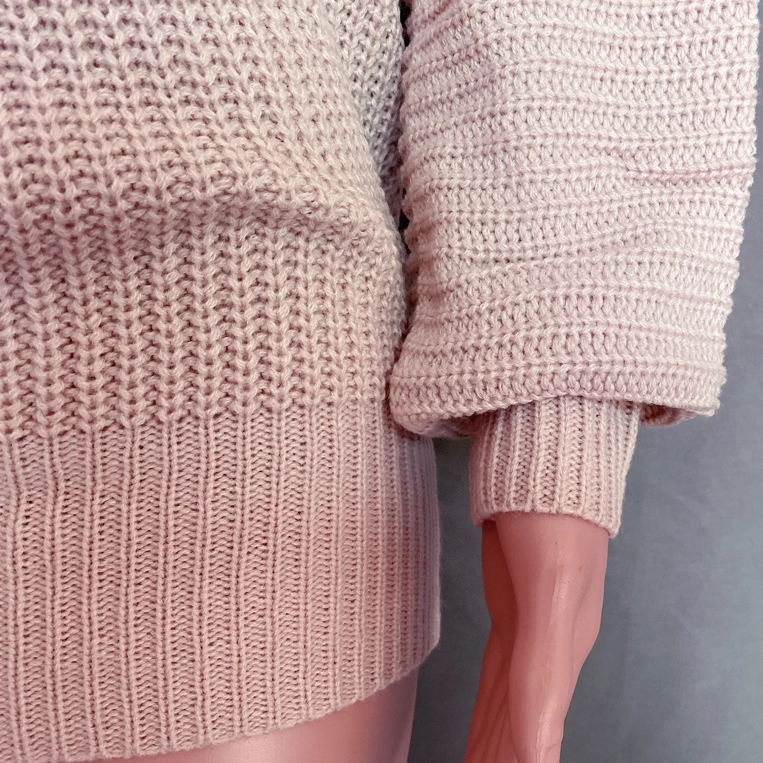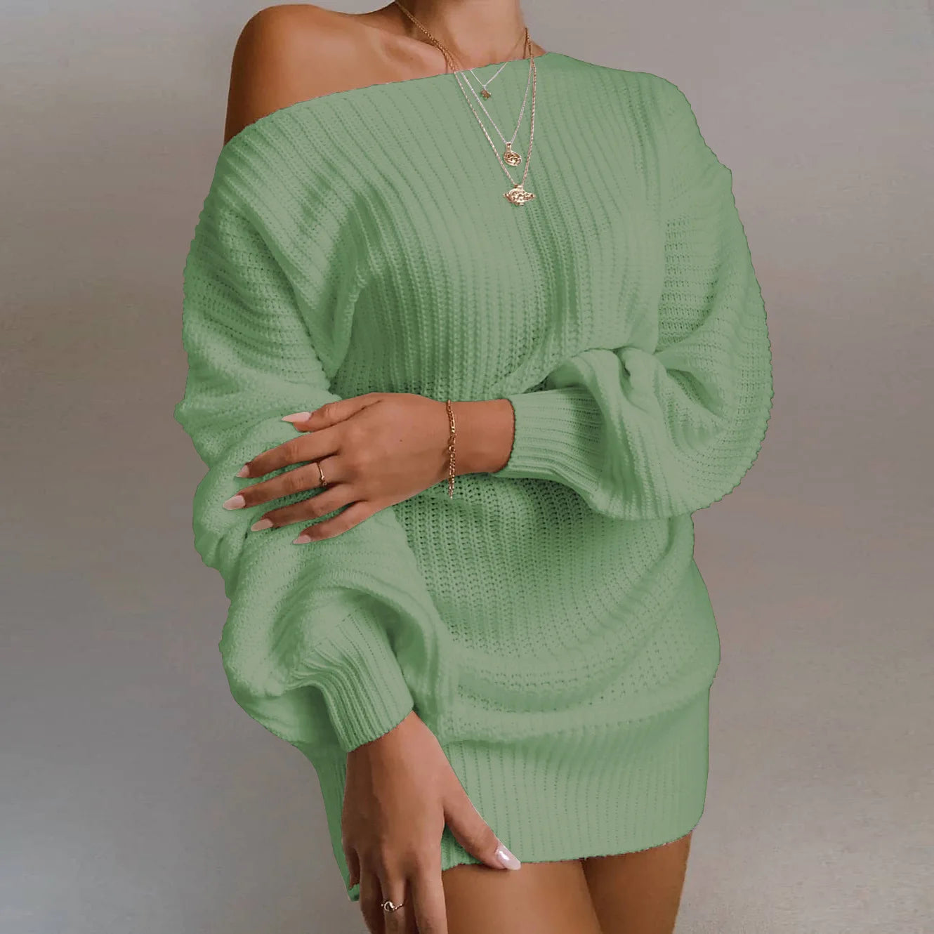 Women's Knitted Mini Sweater Dress - Long Sleeve Knitwear Dress