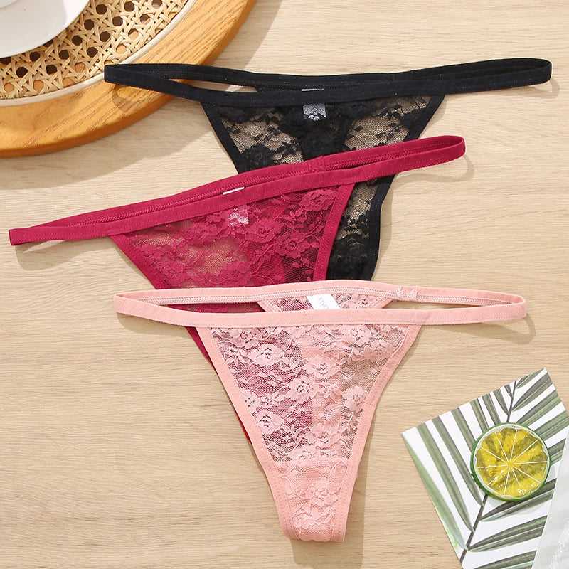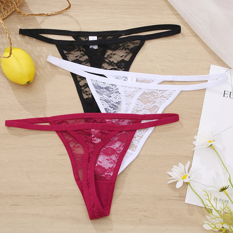 Women's Lace Thongs Low Waist T-Back Underwear Lace G-string Underpants Lingerie