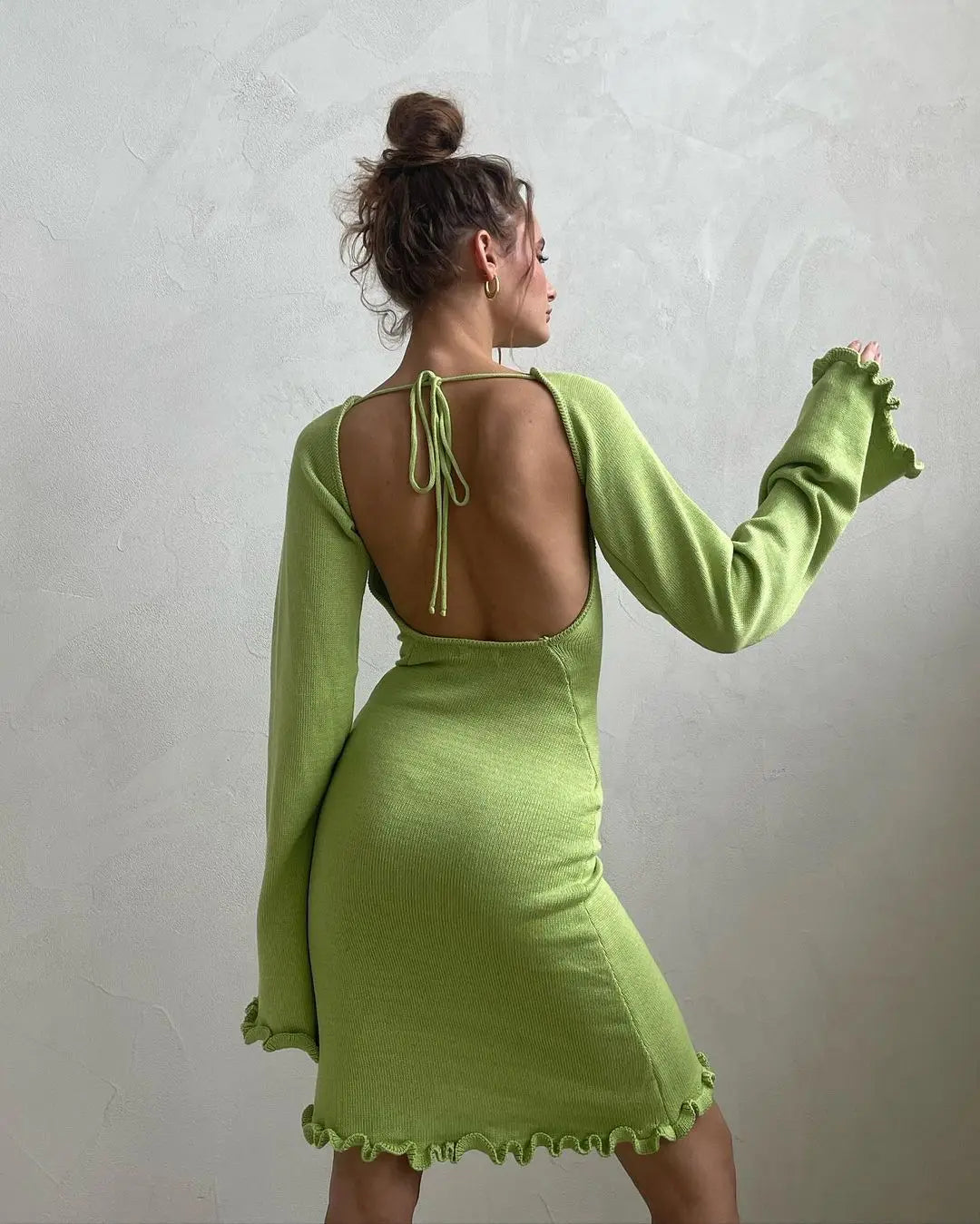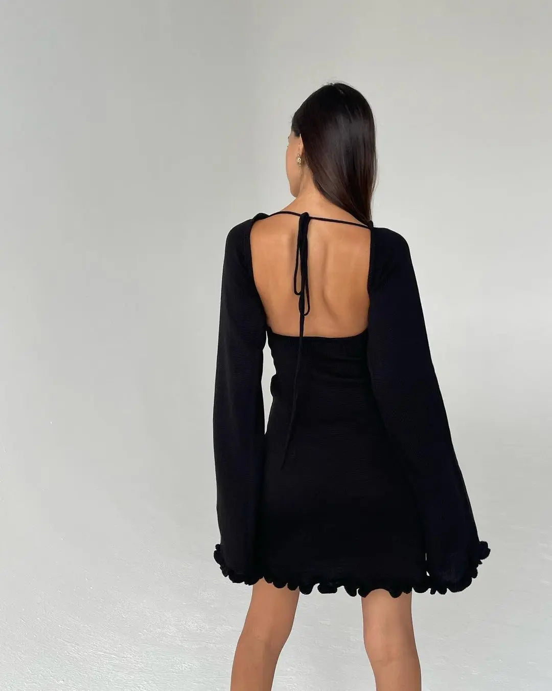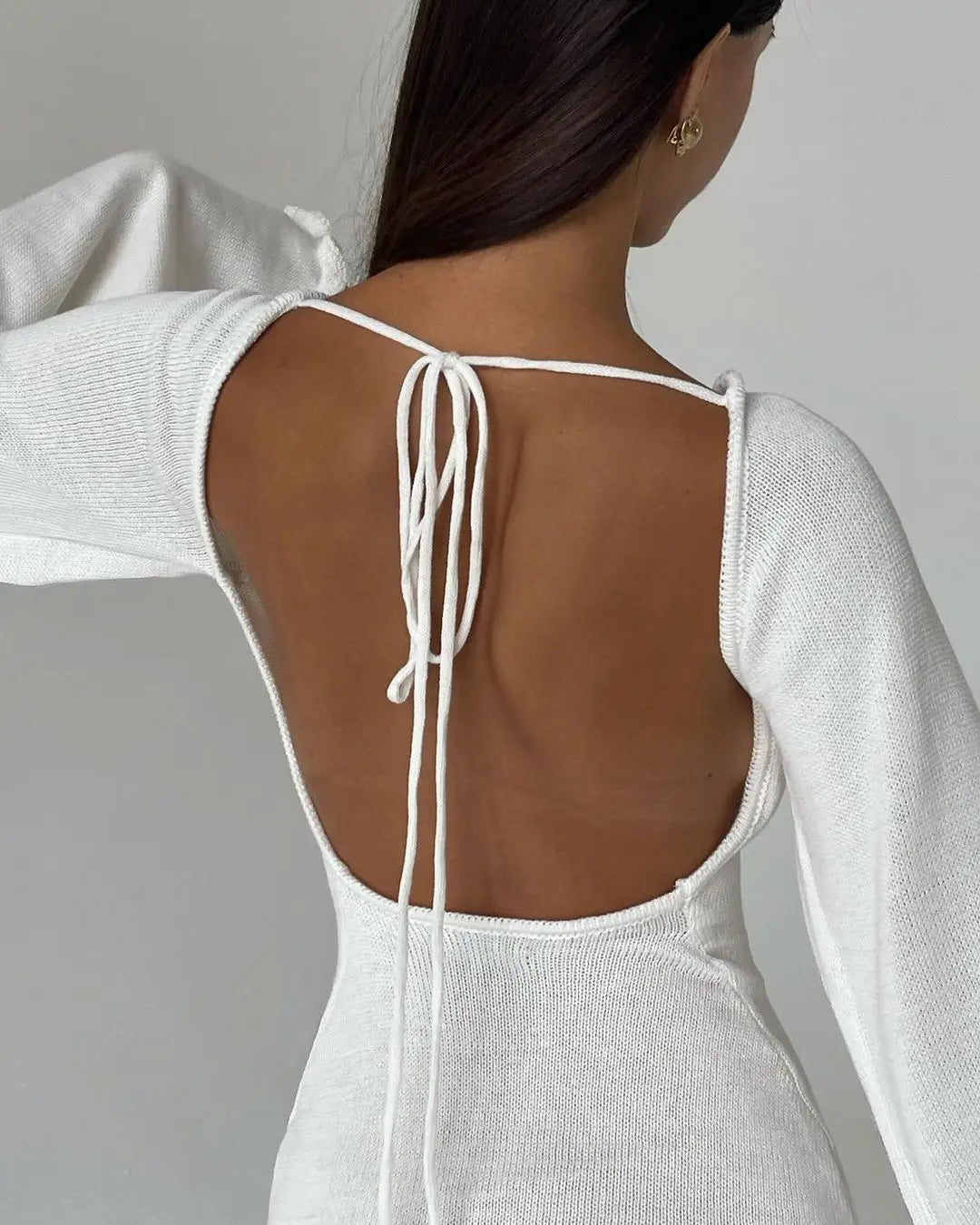 Women's Long Sleeve Backless Knitted Sweater Mini Dress