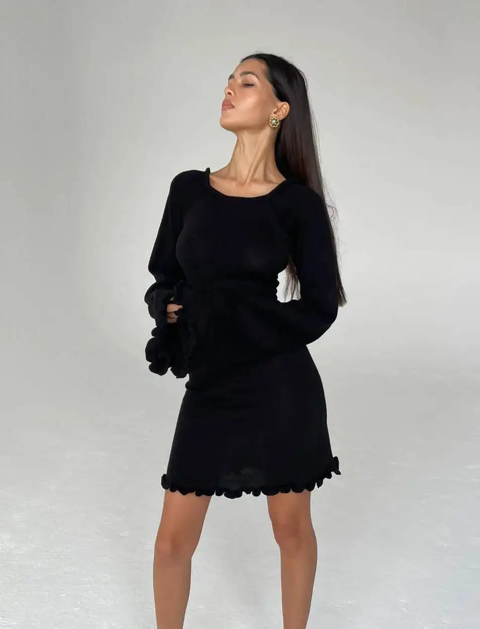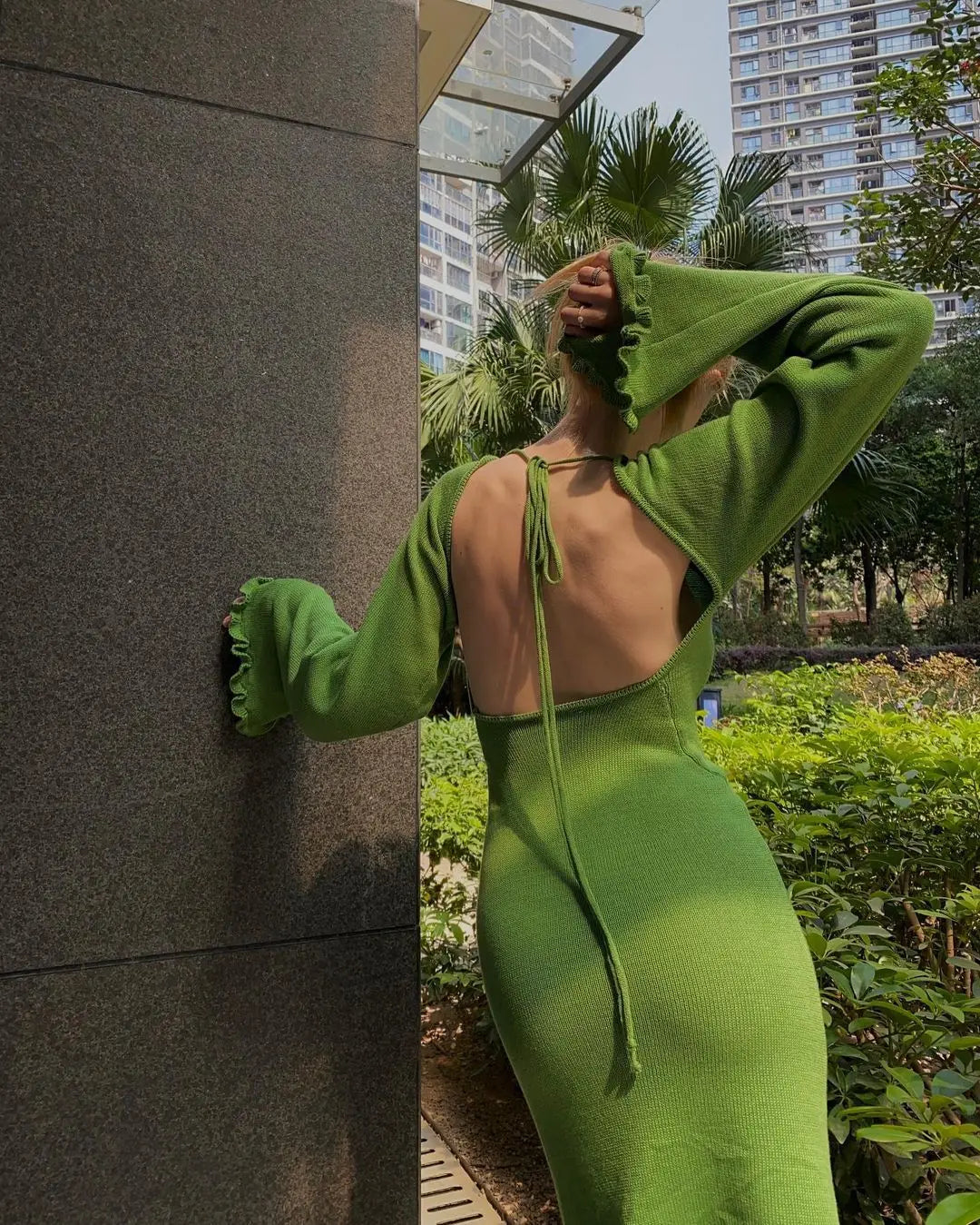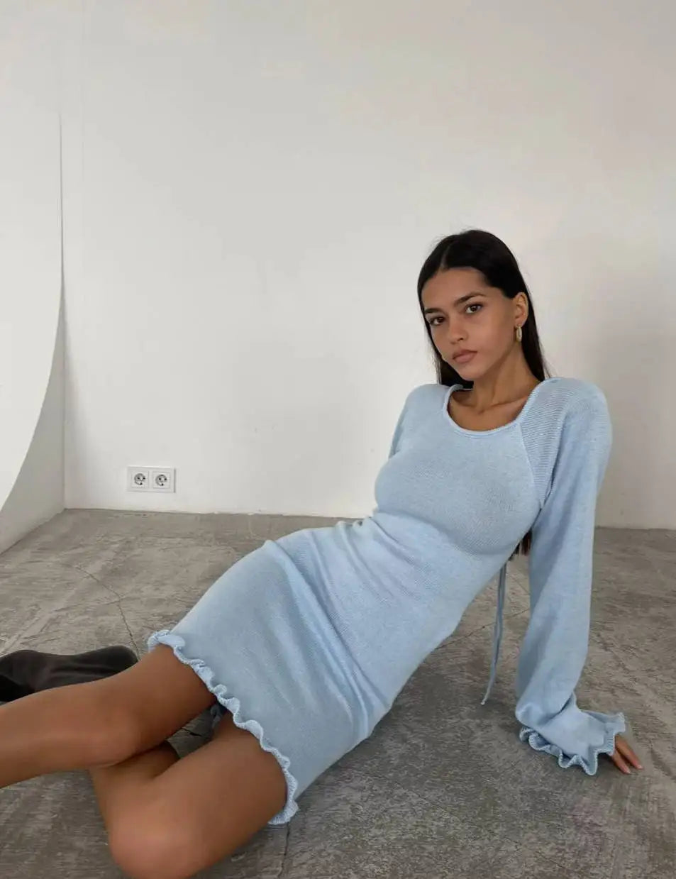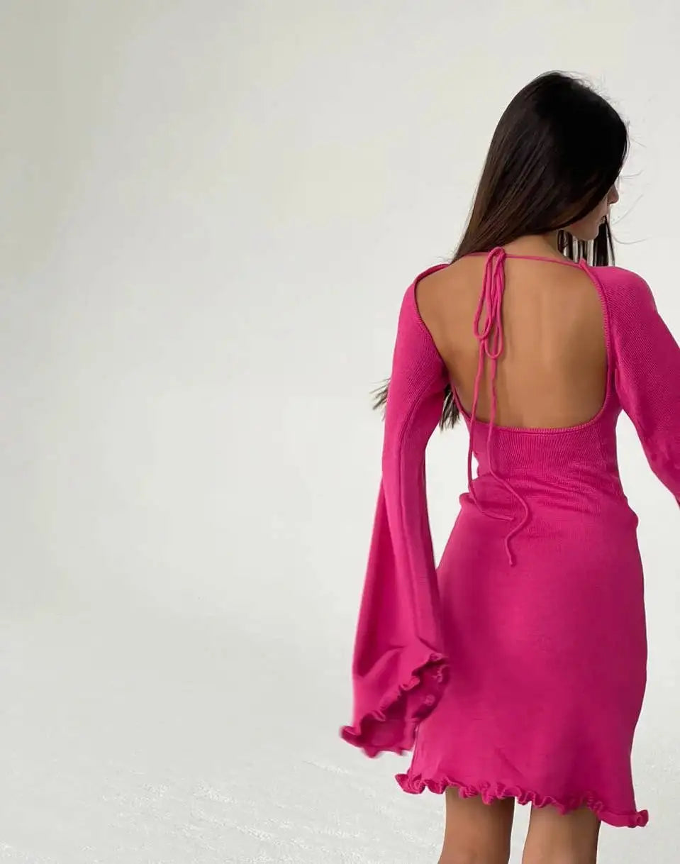 Women's Long Sleeve Backless Knitted Sweater Mini Dress