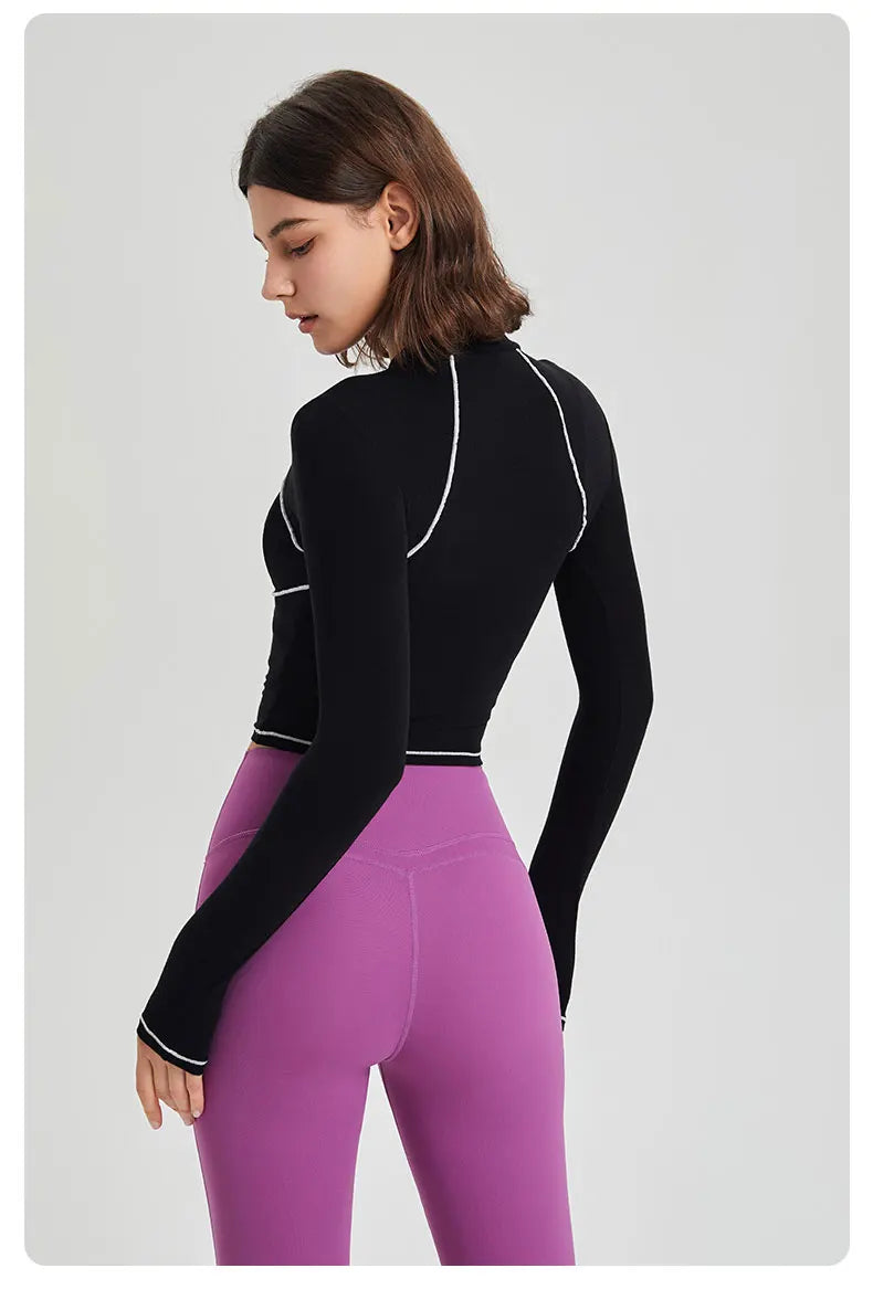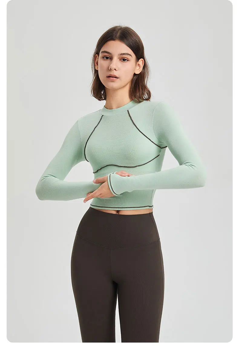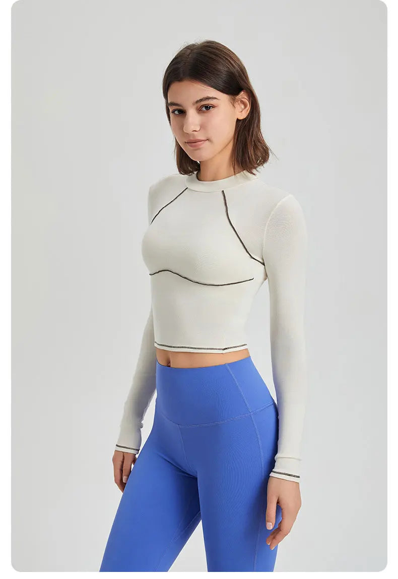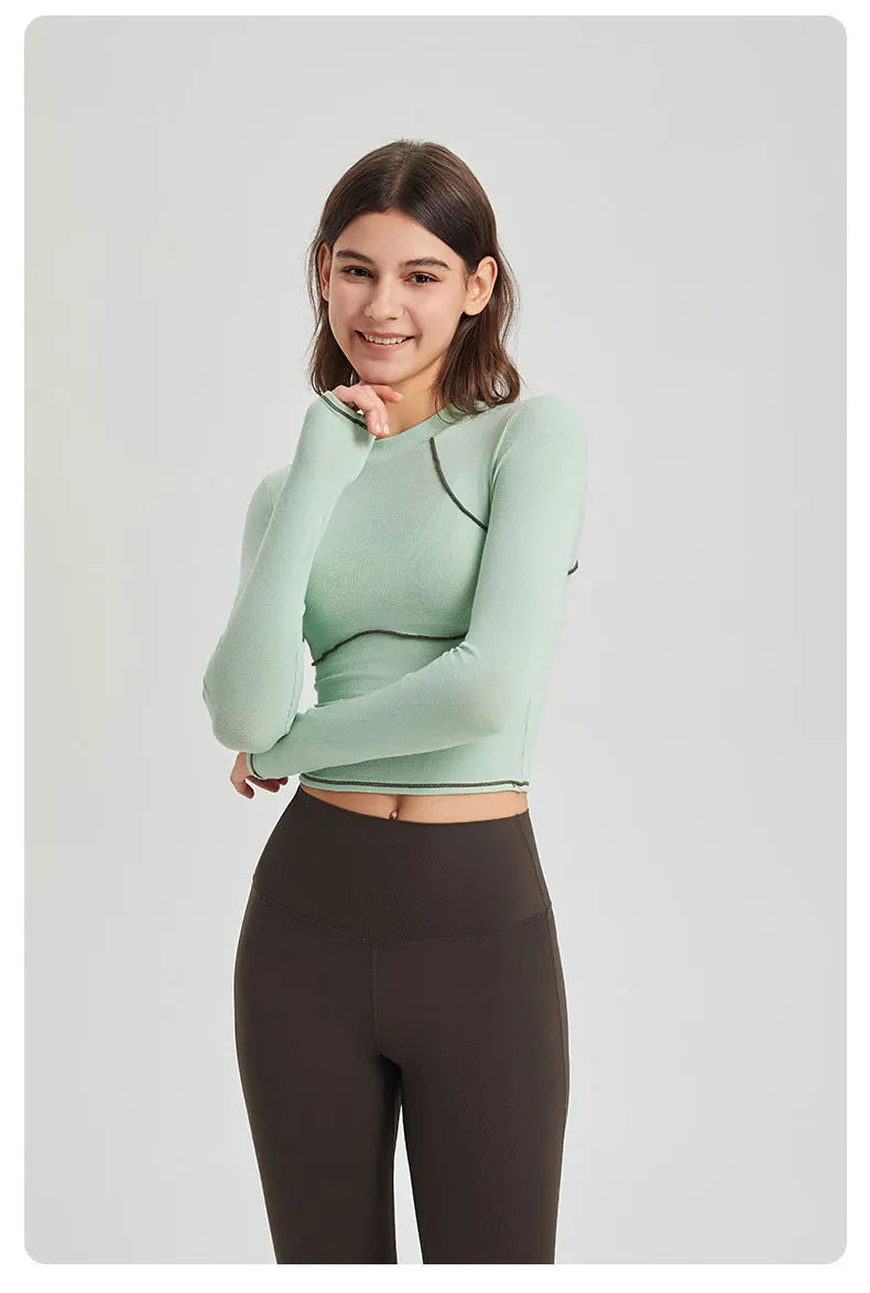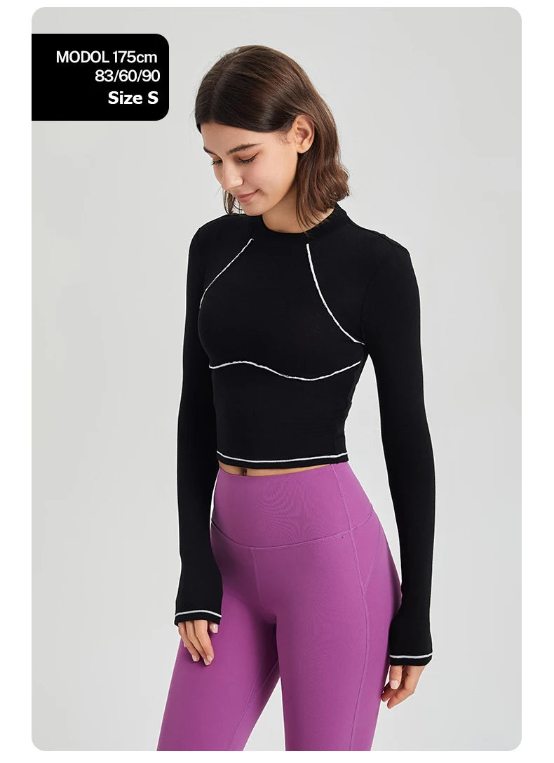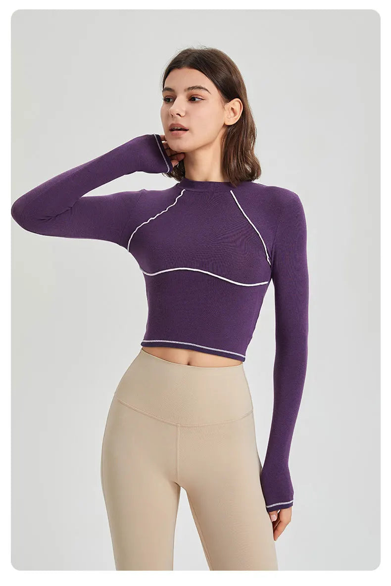 Women's Long Sleeve Yoga Shirt Striped Slim Fit Gym Running Top Round Neck Blouse Breathable Soft Workout Sportswear