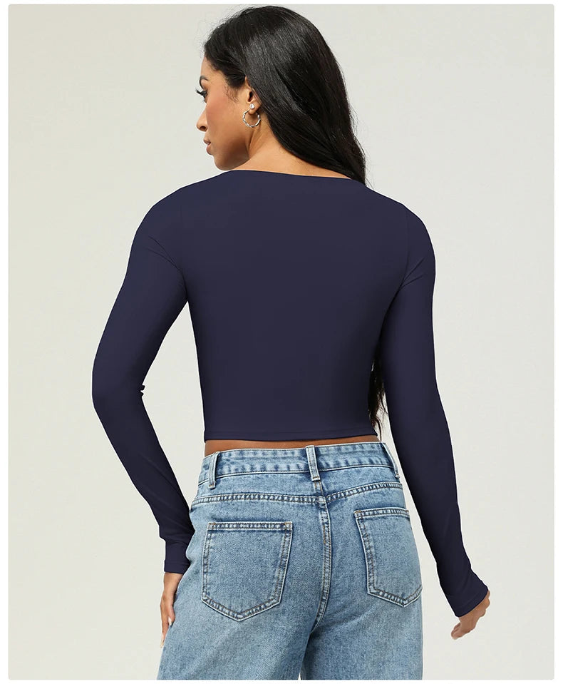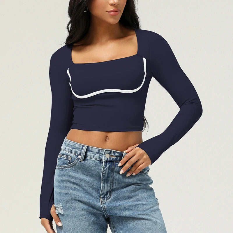 Women's Long Sleeve Yoga T-Shirt Square Neckline Gym Top Breathable Workout Running Crop Top Sportswear