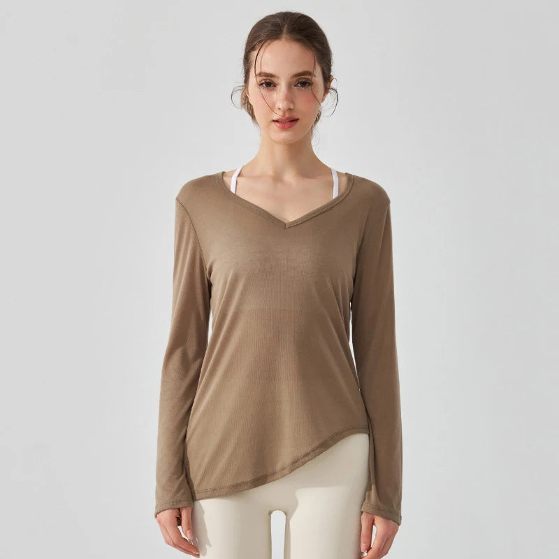 Women's Loose Running Top Long Sleeve Yoga Shirt V-Neckline Workout Blouse Sportswear Workout Clothes
