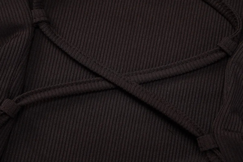 Women's Loose U Neck Ribbed Knit Long Back Bandage Lace Up Fall Flare Sleeve Maxi Dress