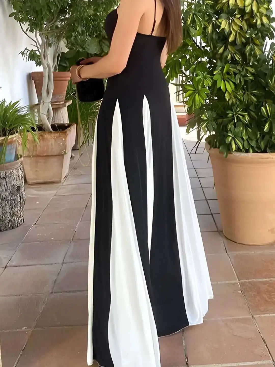 Women's Maxi Slip V Neck A Line Suspender Patchwork Maxi Dress