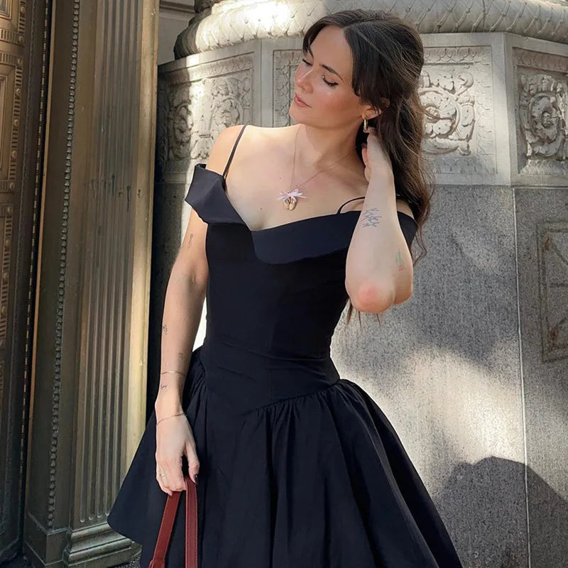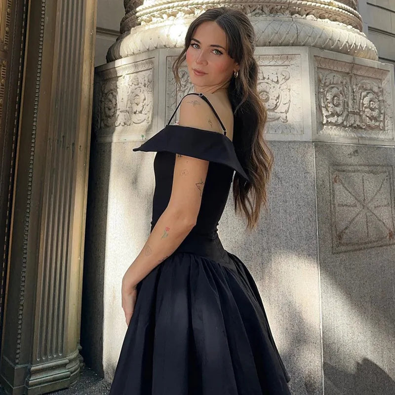 Women's Off Shoulder Mini A-Line Sleeve Sexy Backless Slip Dress