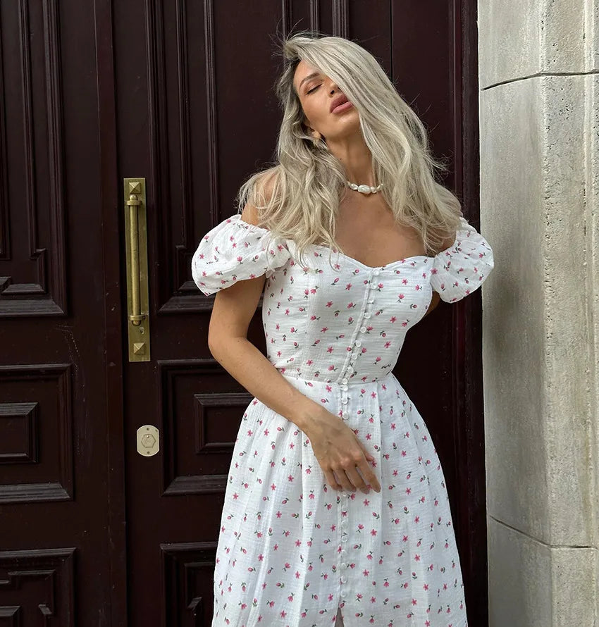 Women's Off-Shoulder Print Split Slim Sleeveless High Waist Backless Party Long Dress