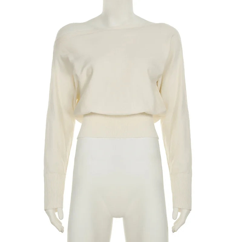 Women's Off-shoulder Waisted Long Sleeve Knit Pullover Sweater