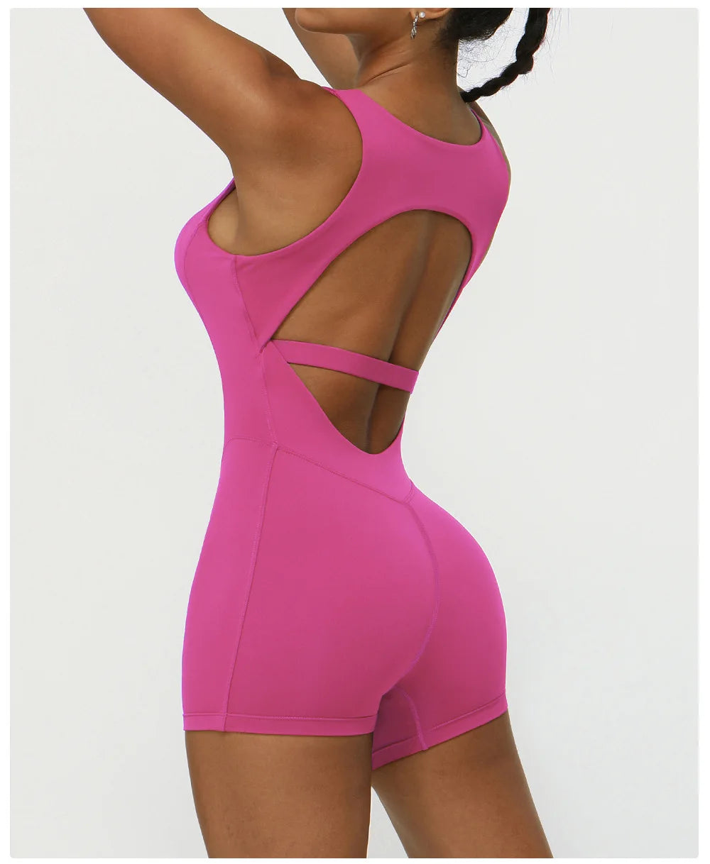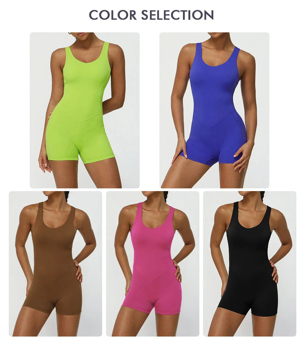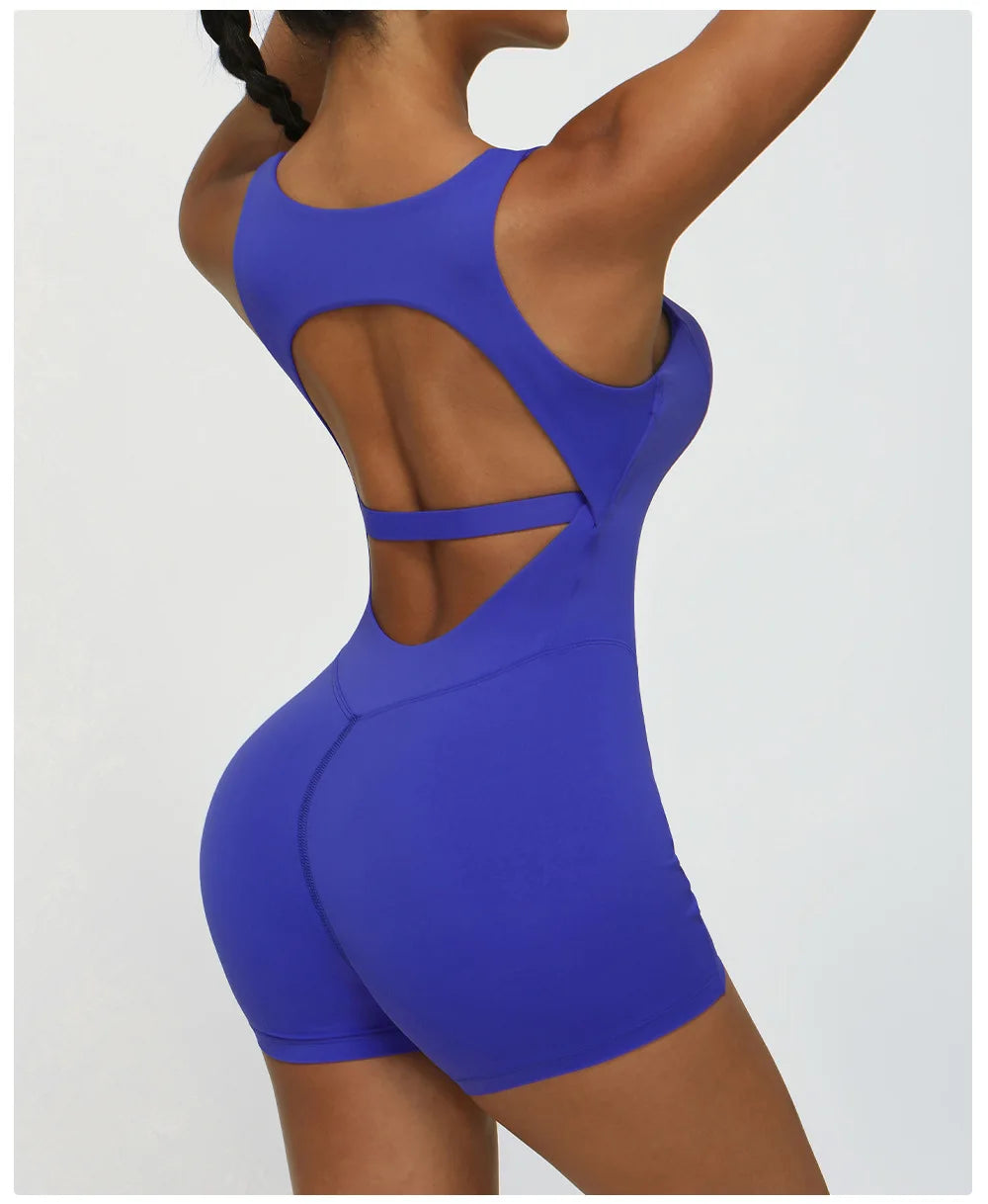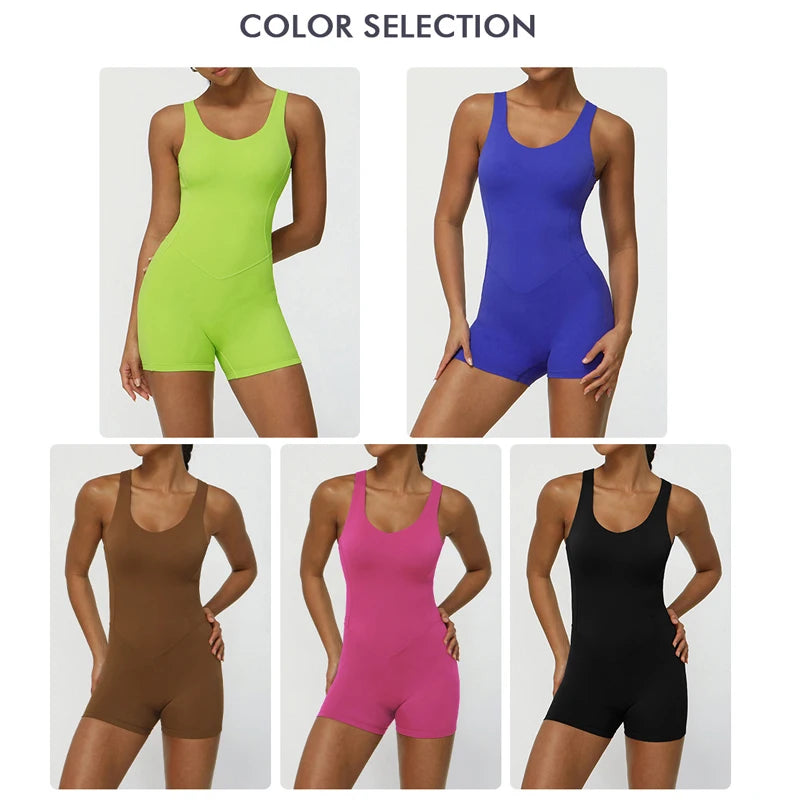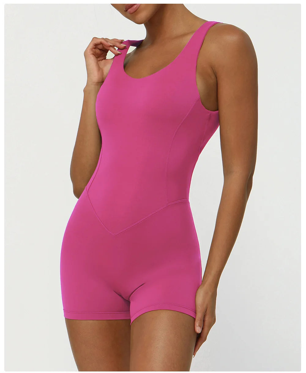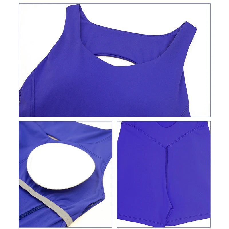 Women's One Piece Fitness Set - Gym, Yoga, Running Jumpsuit Breathable Quick Dry Short Sportswear Workout Set