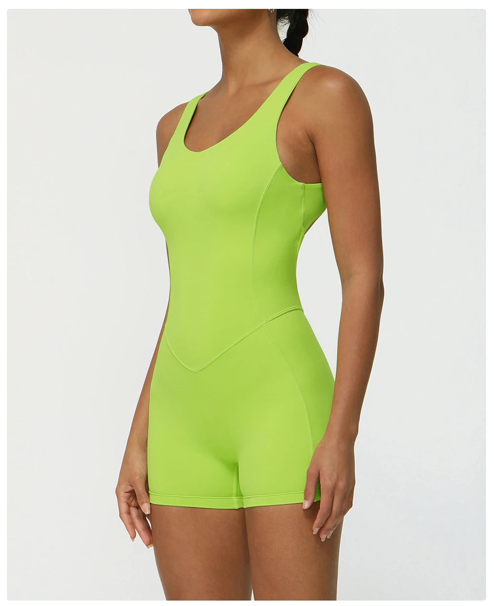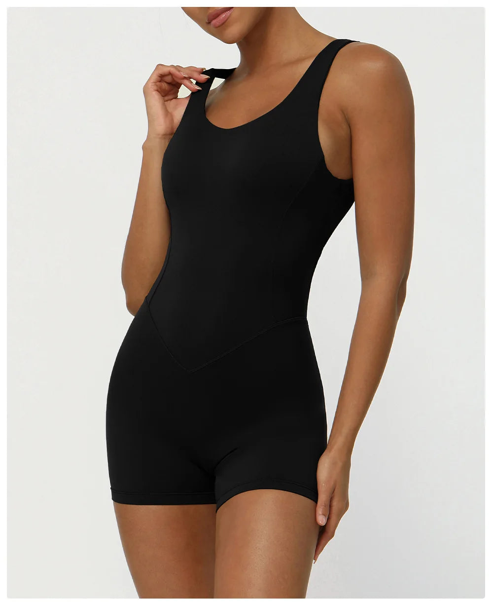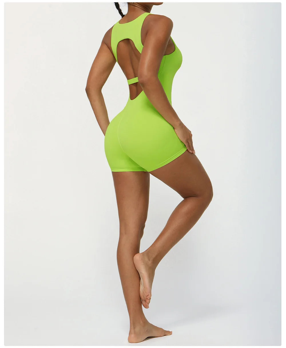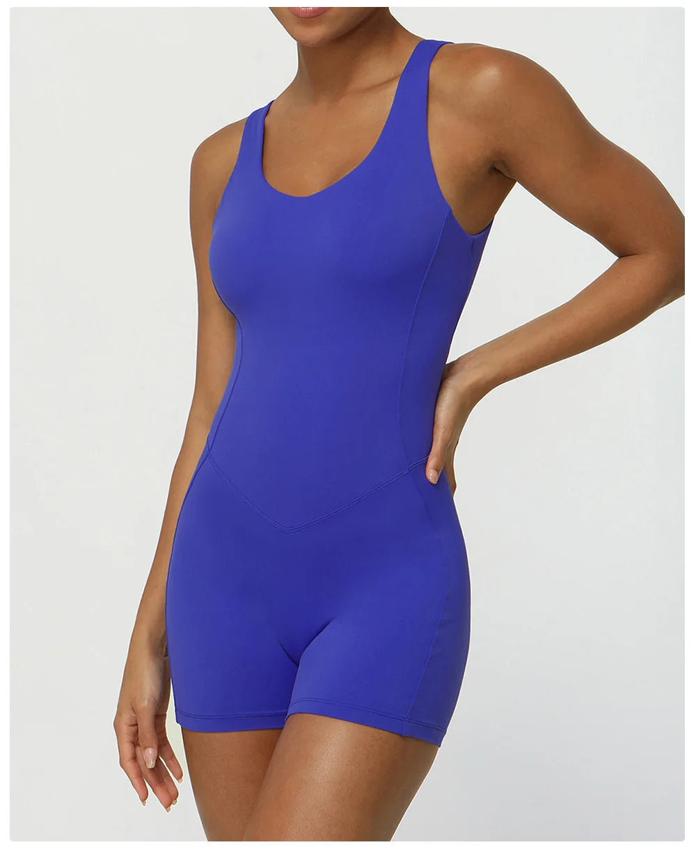 Women's One Piece Fitness Set - Gym, Yoga, Running Jumpsuit Breathable Quick Dry Short Sportswear Workout Set