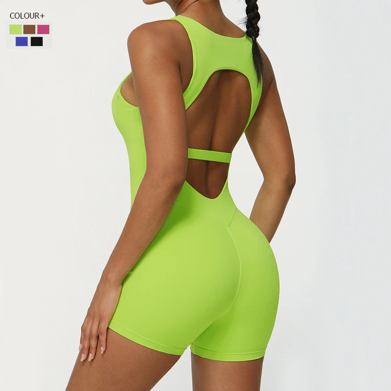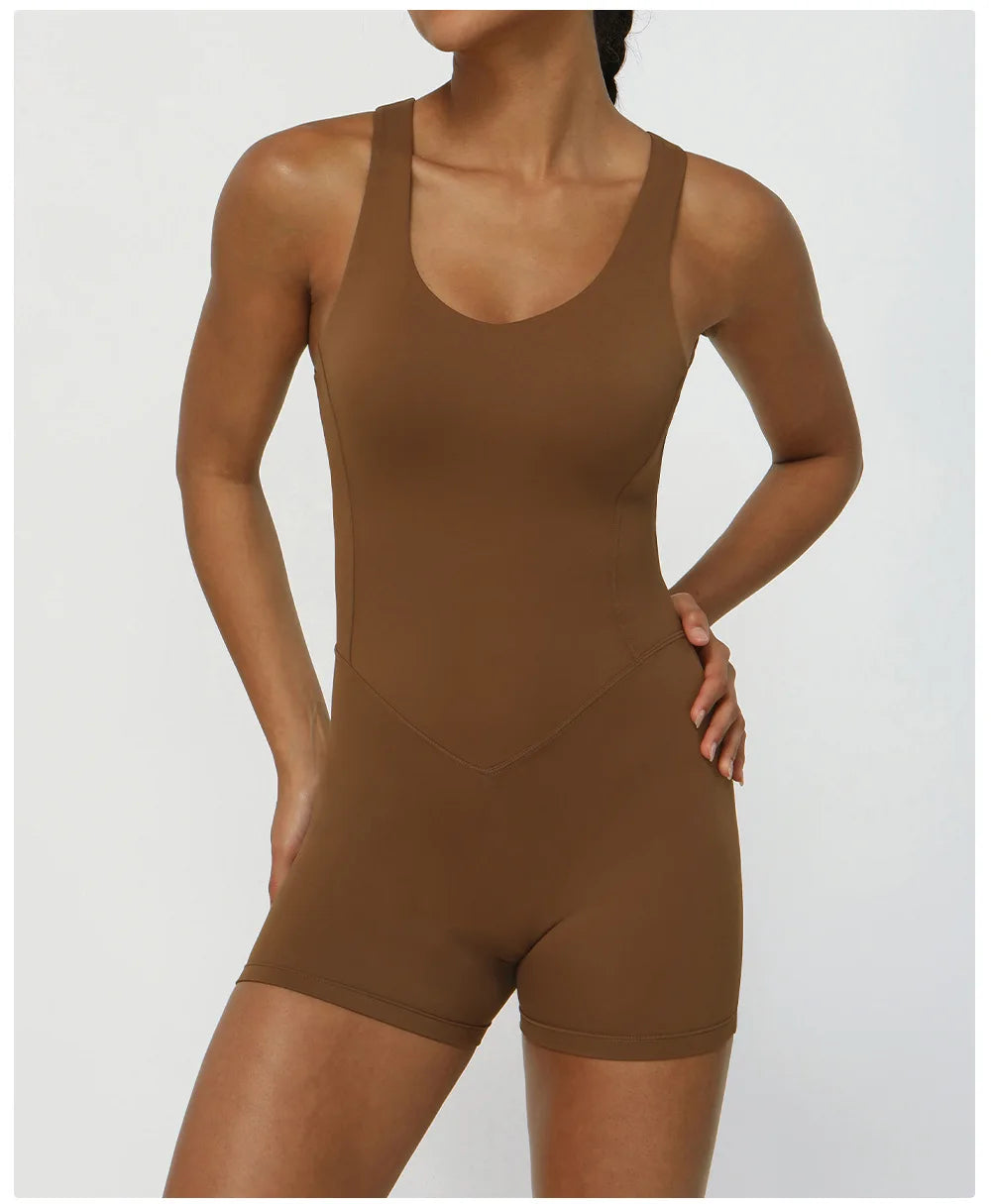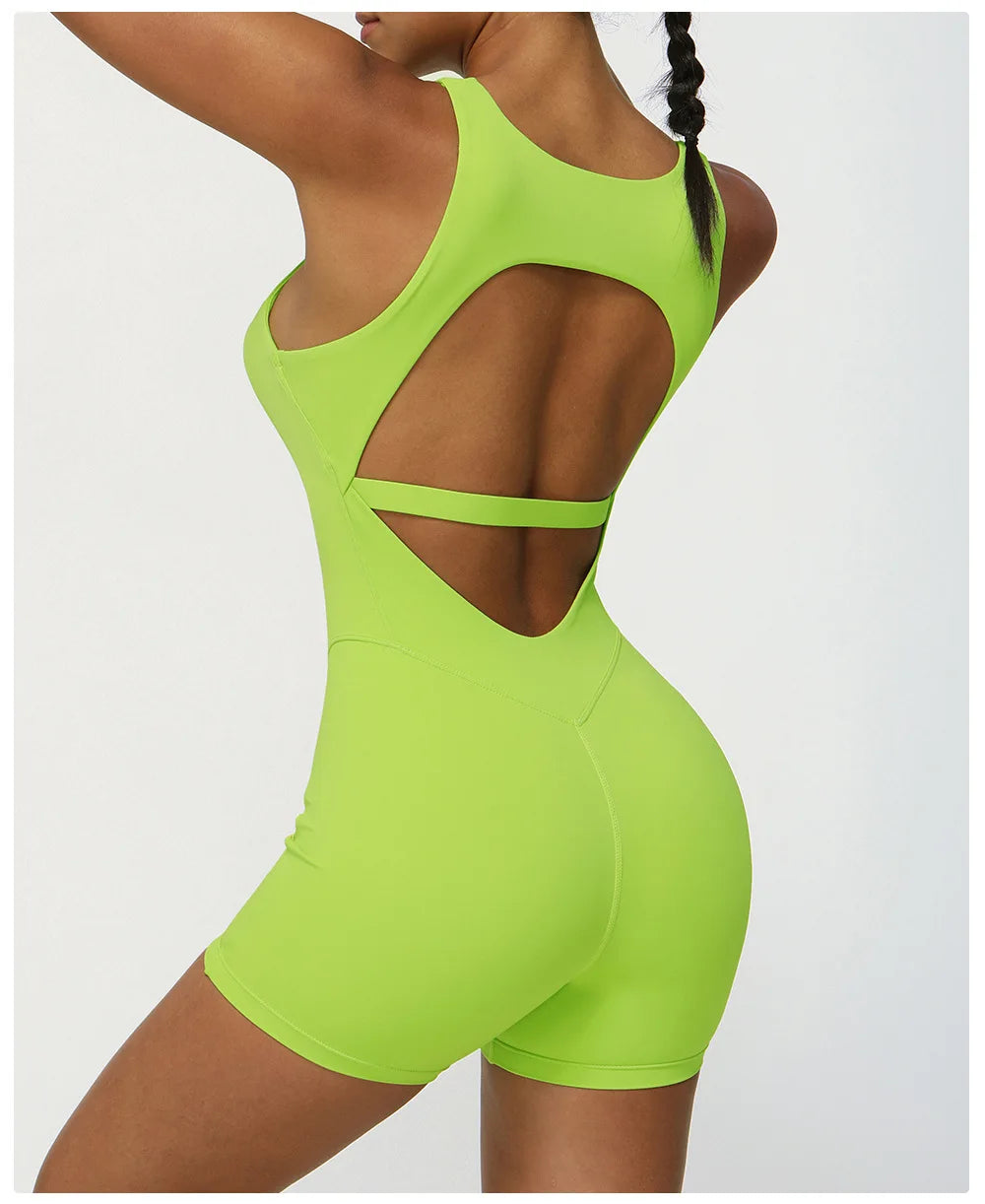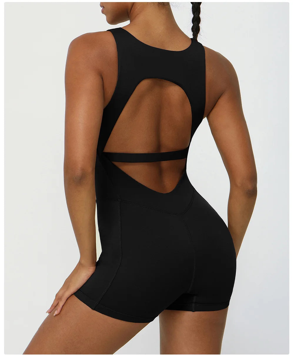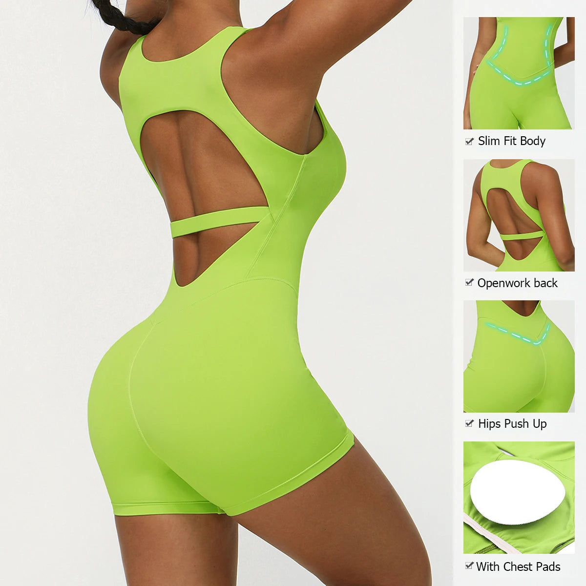 Women's One Piece Fitness Set - Gym, Yoga, Running Jumpsuit Breathable Quick Dry Short Sportswear Workout Set