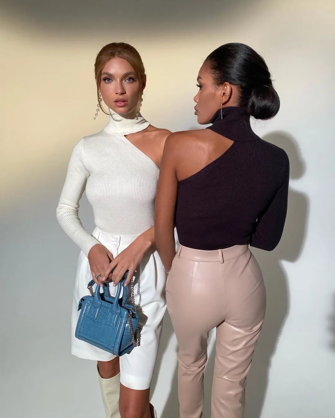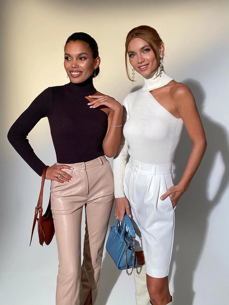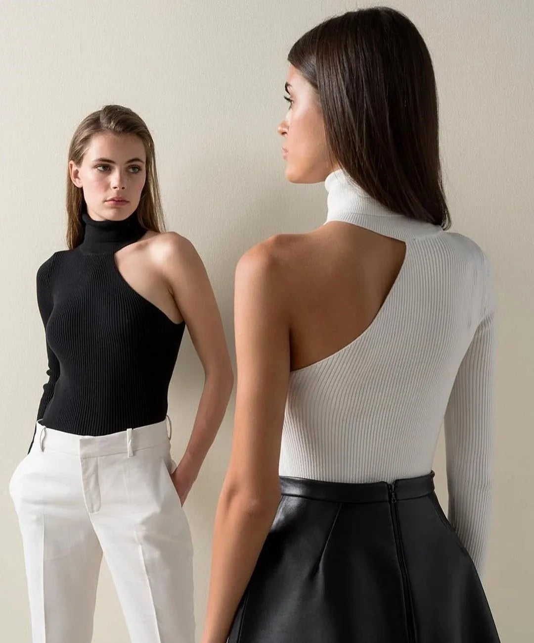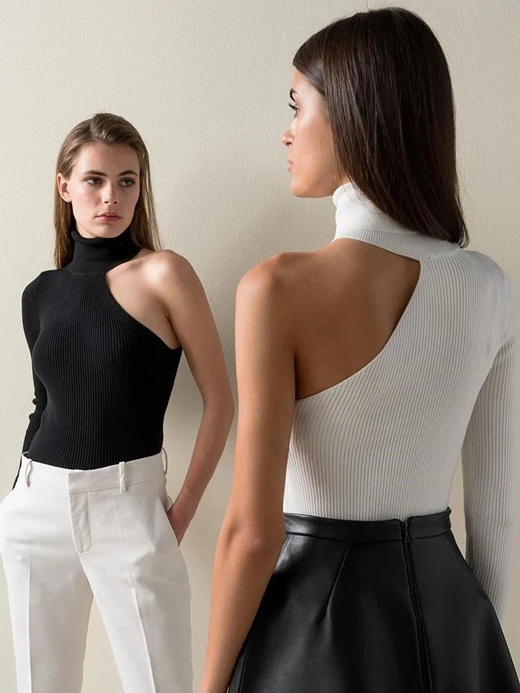 Women's One Shoulder Ribbed Knitted Cut Out Bodysuit