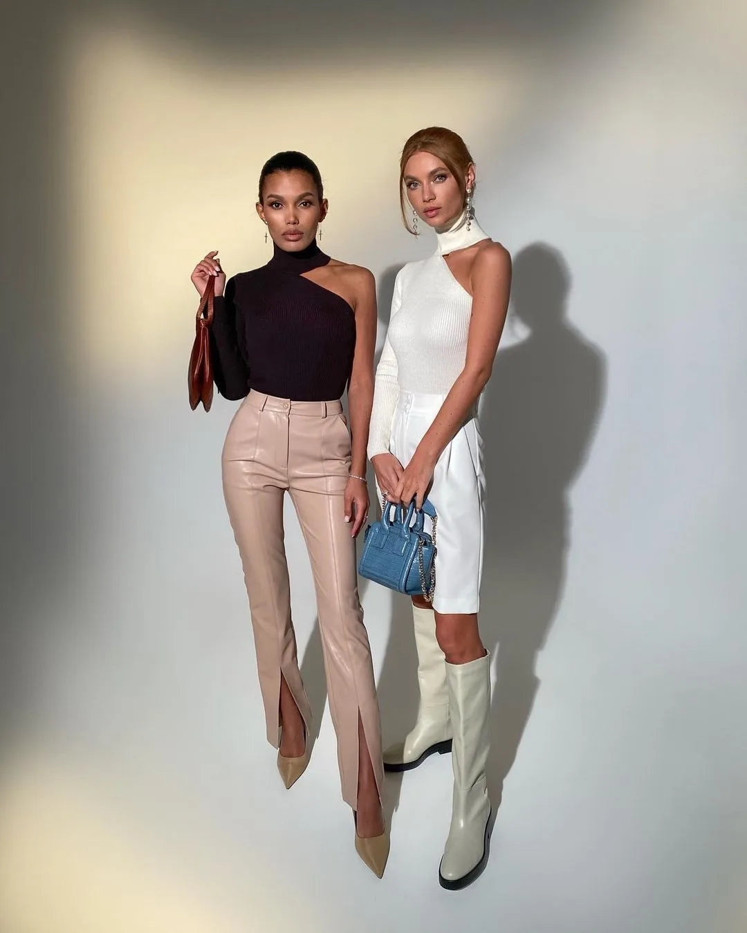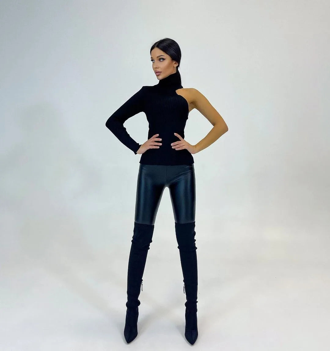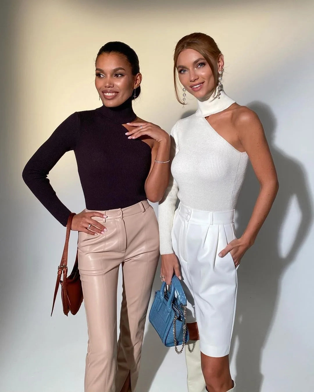 Women's One Shoulder Ribbed Knitted Cut Out Bodysuit
