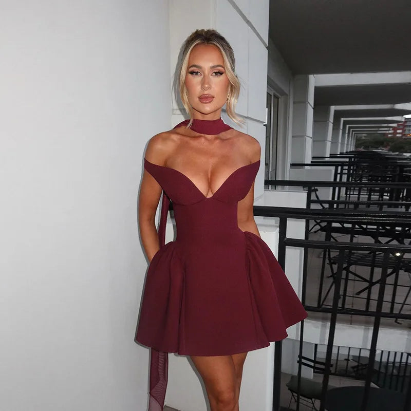Women's Plunge Backless Sleeveless Mini V Neck High Waist Party Dress