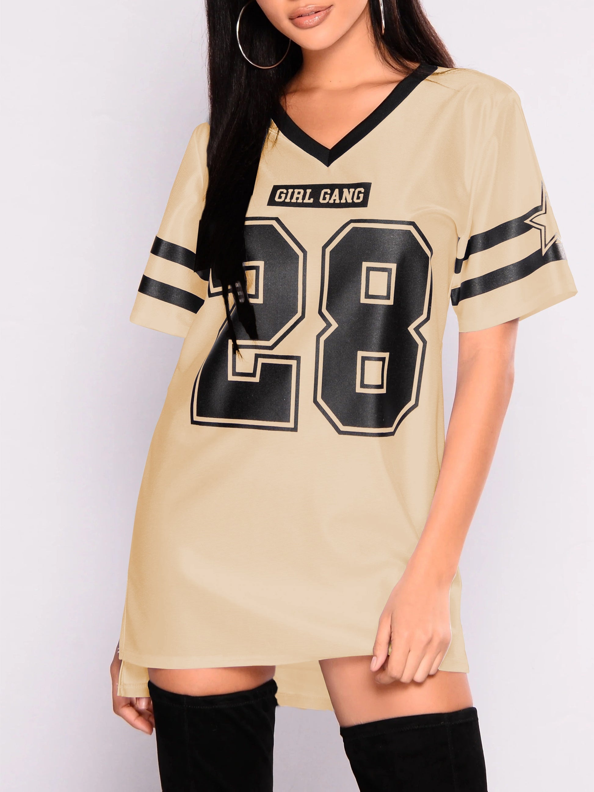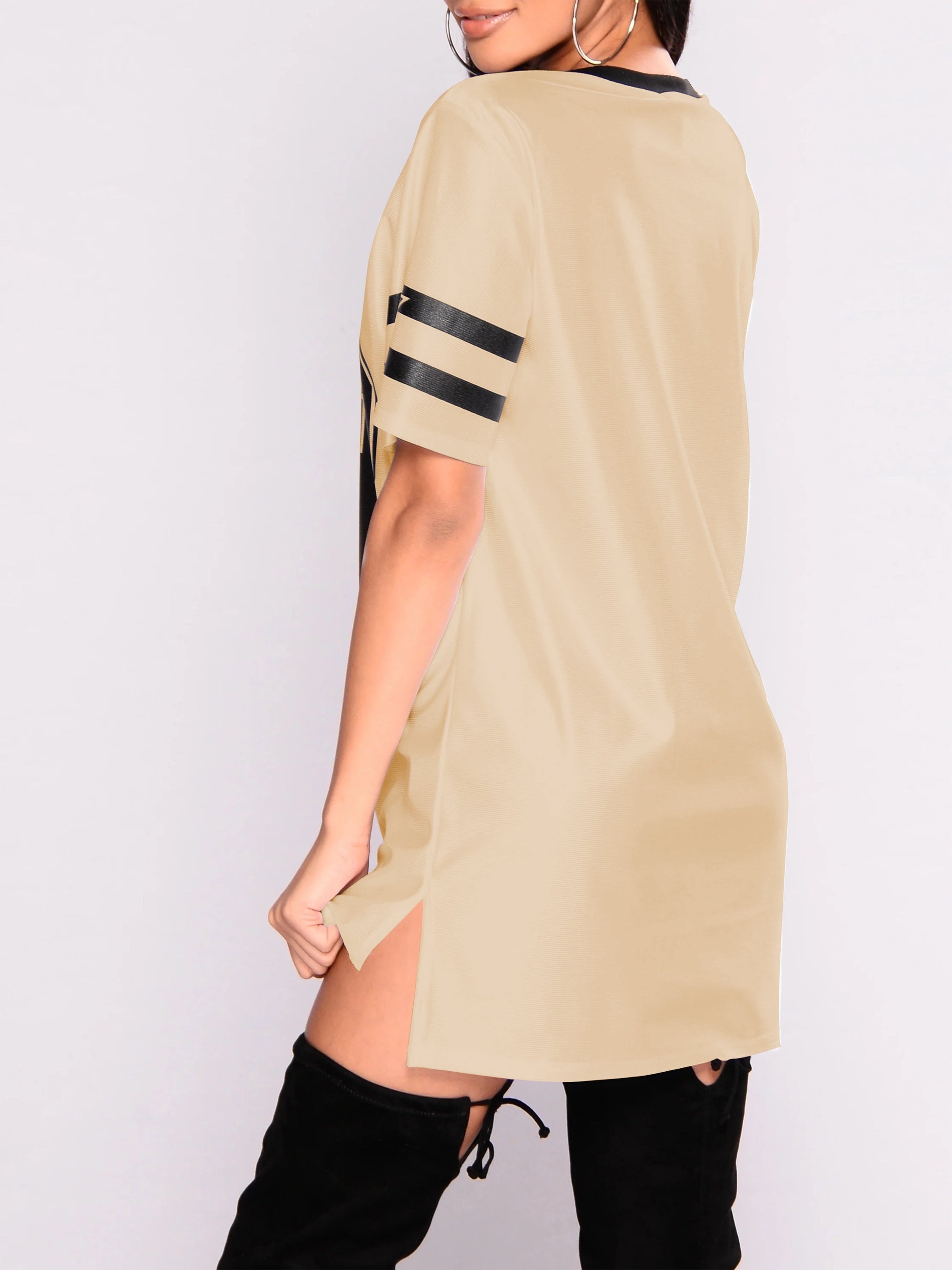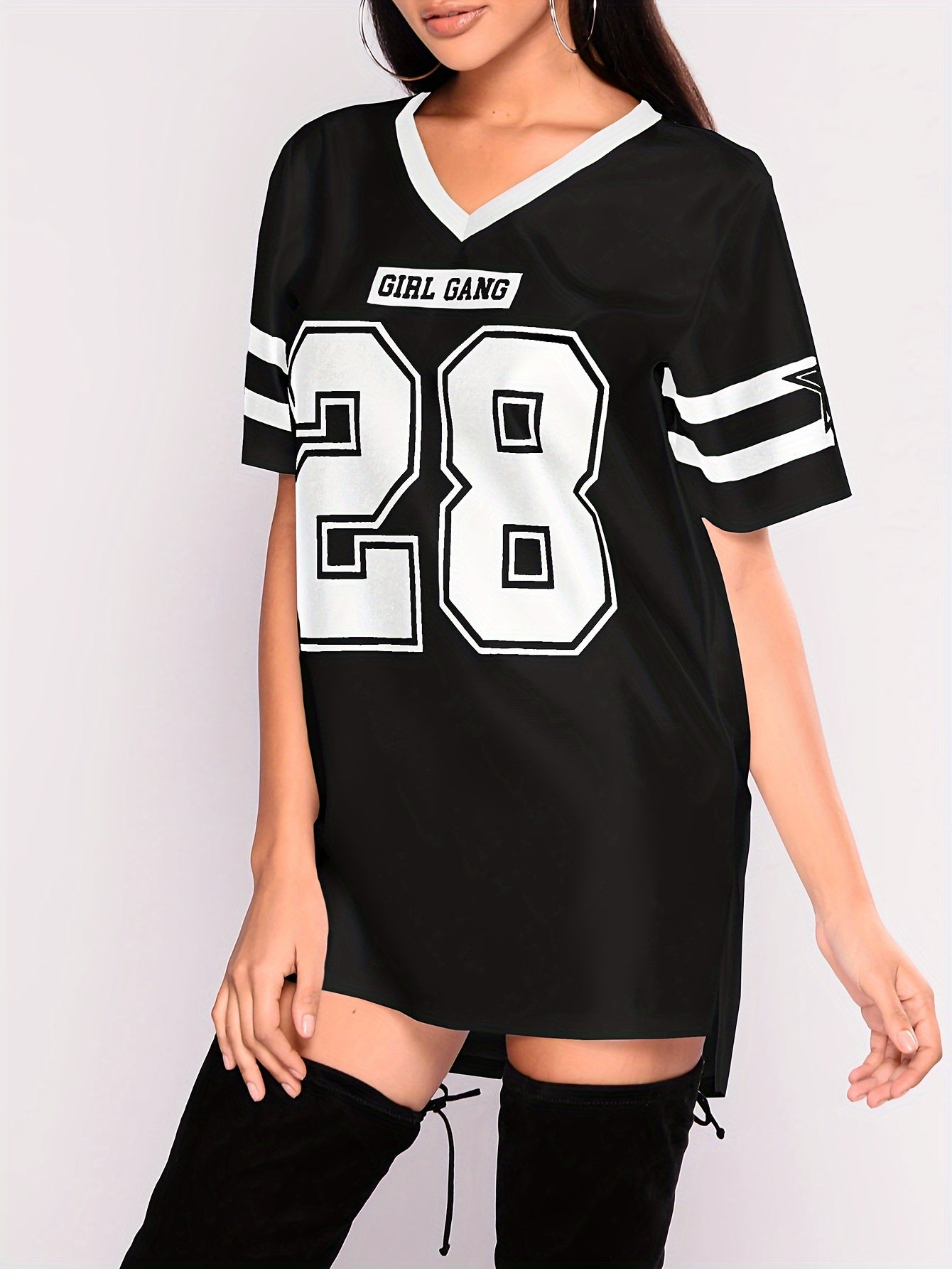 Women's Plus Size Casual V Neck Short Sleeve 28 Print Split T-Shirt