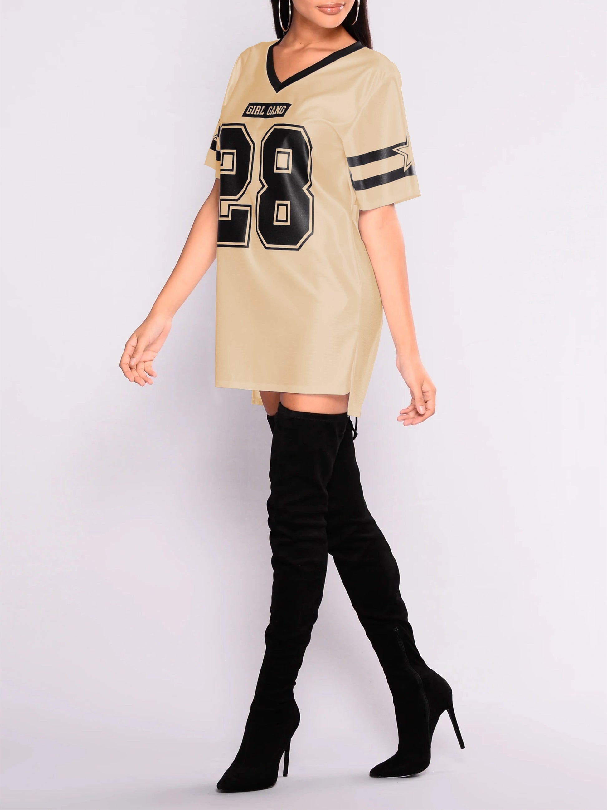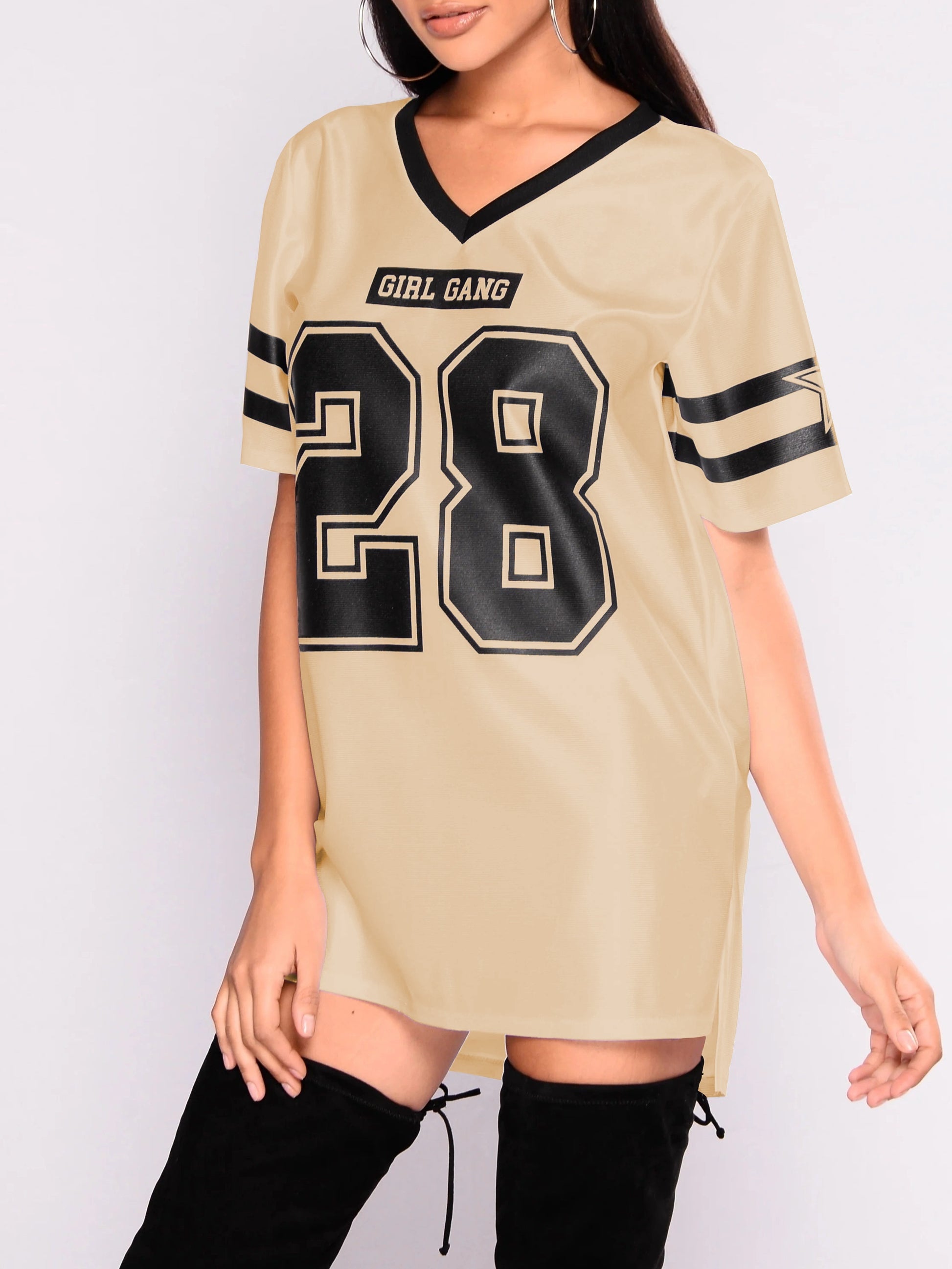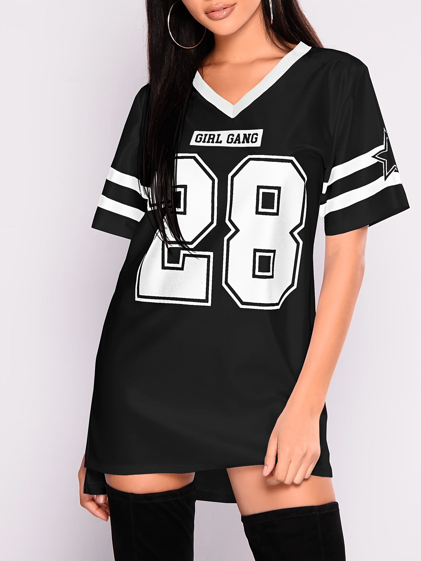 Women's Plus Size Casual V Neck Short Sleeve 28 Print Split T-Shirt