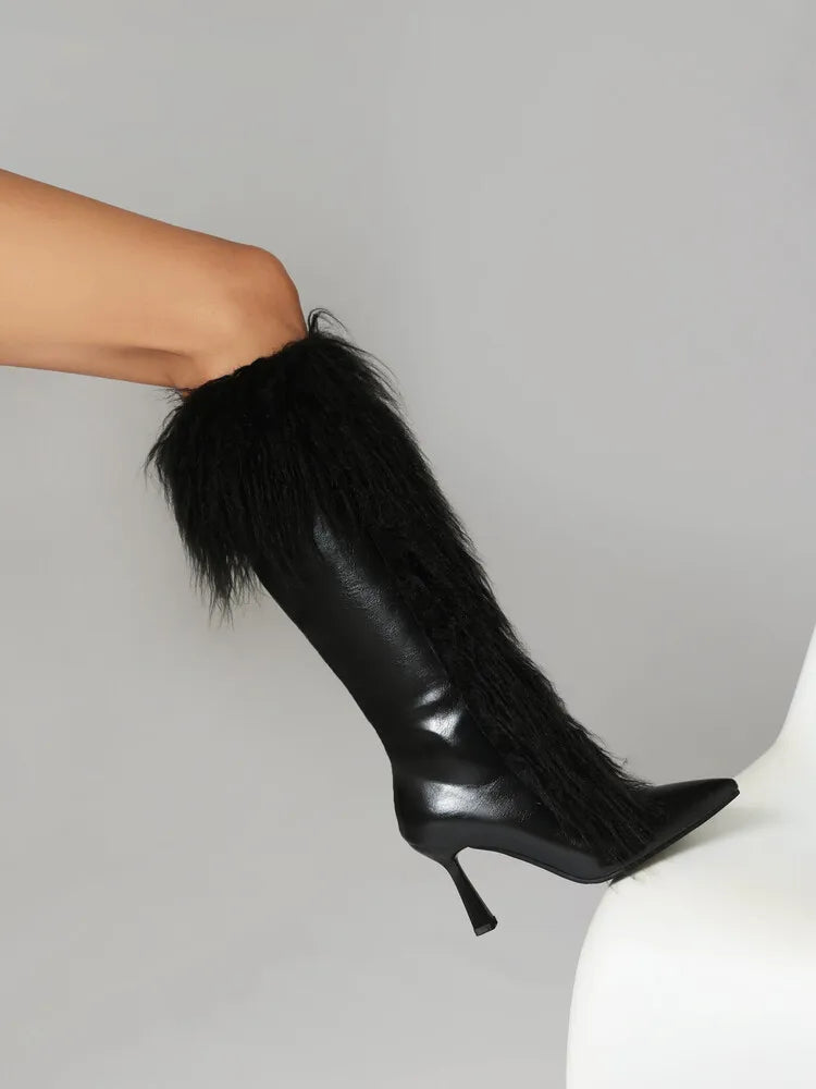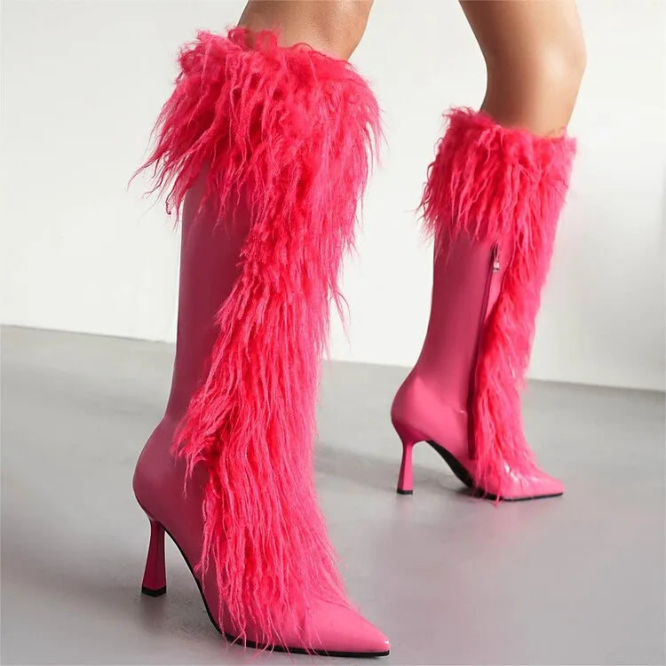 Women's Pointed Patent Leather Knee High Side Zipper High Heel Boots