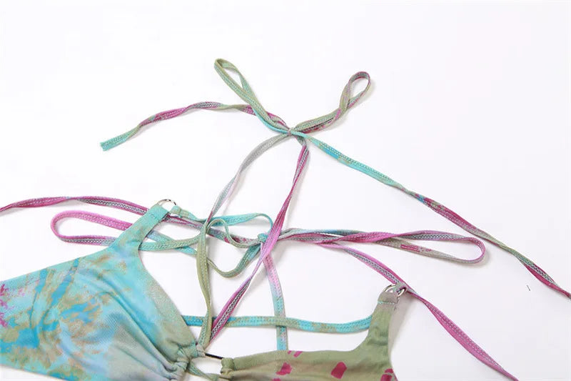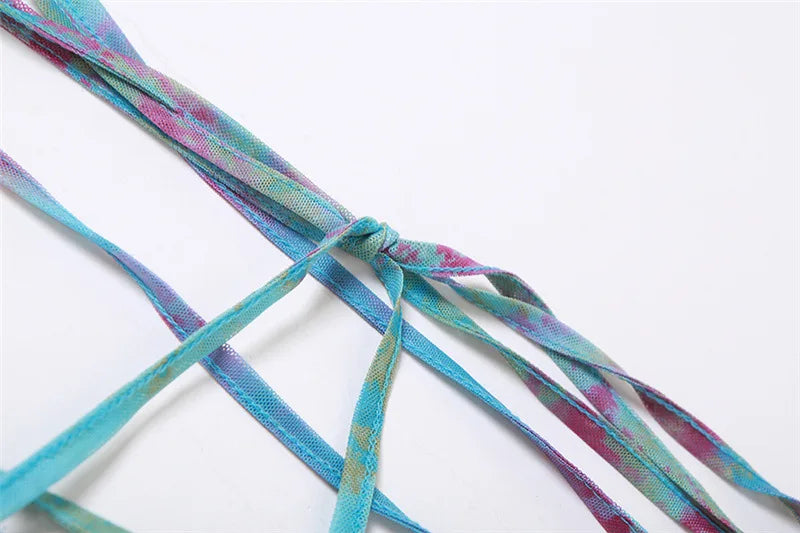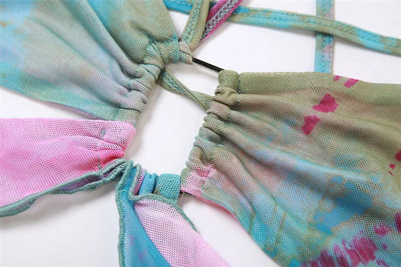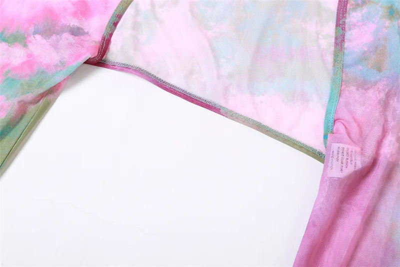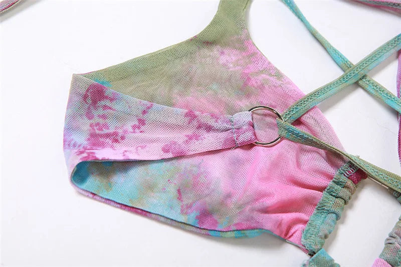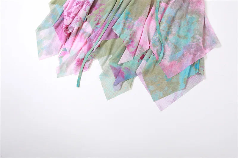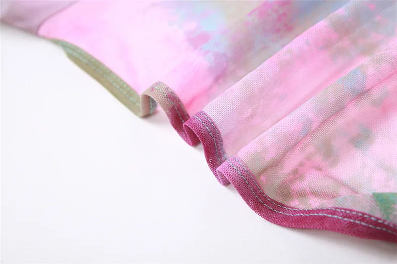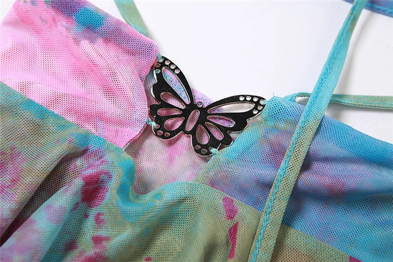 Women's Print Butterfly Mesh 3 Piece Set Backless Top and Skirt Co-ords Set