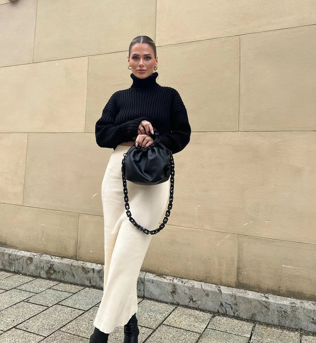 Women's Pullover Knitted Turtleneck Sweaters Top - Flare Sleeve Warm Cropped Sweater Top Jumper