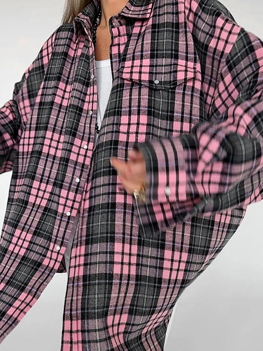 Women's Retro Loose Single-Breasted Long Sleeves Contrast Colour Cardigan Shirt