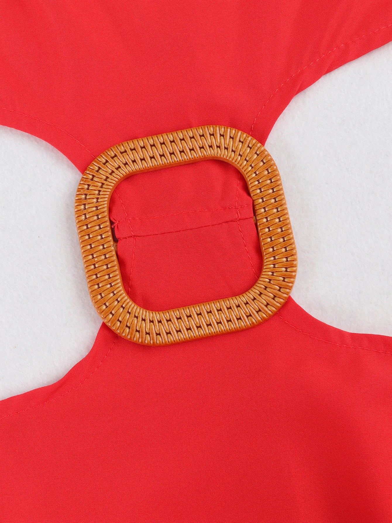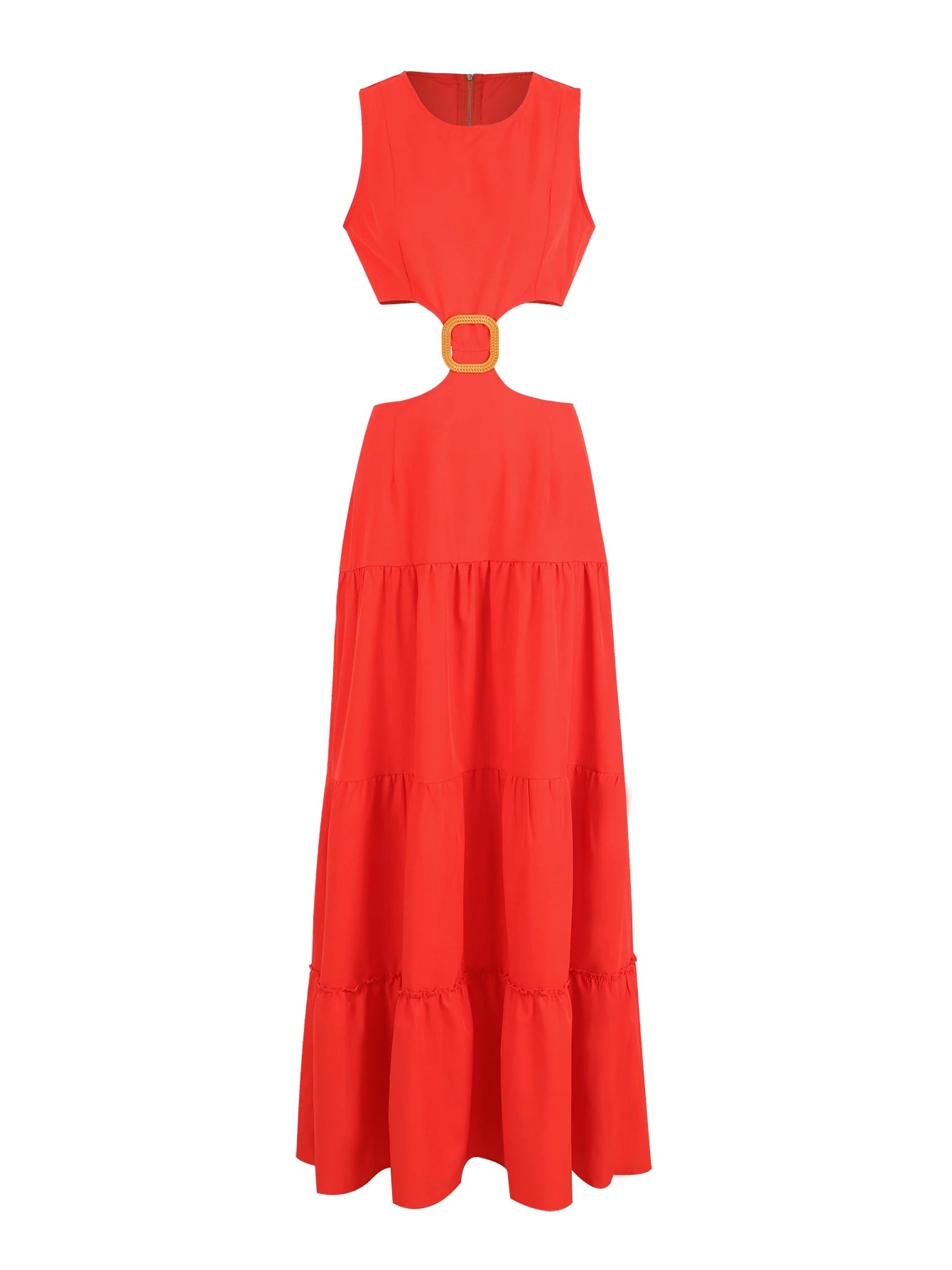 Women's Round Neck Fit and Flare Long Back Zipper Beachwear Dress