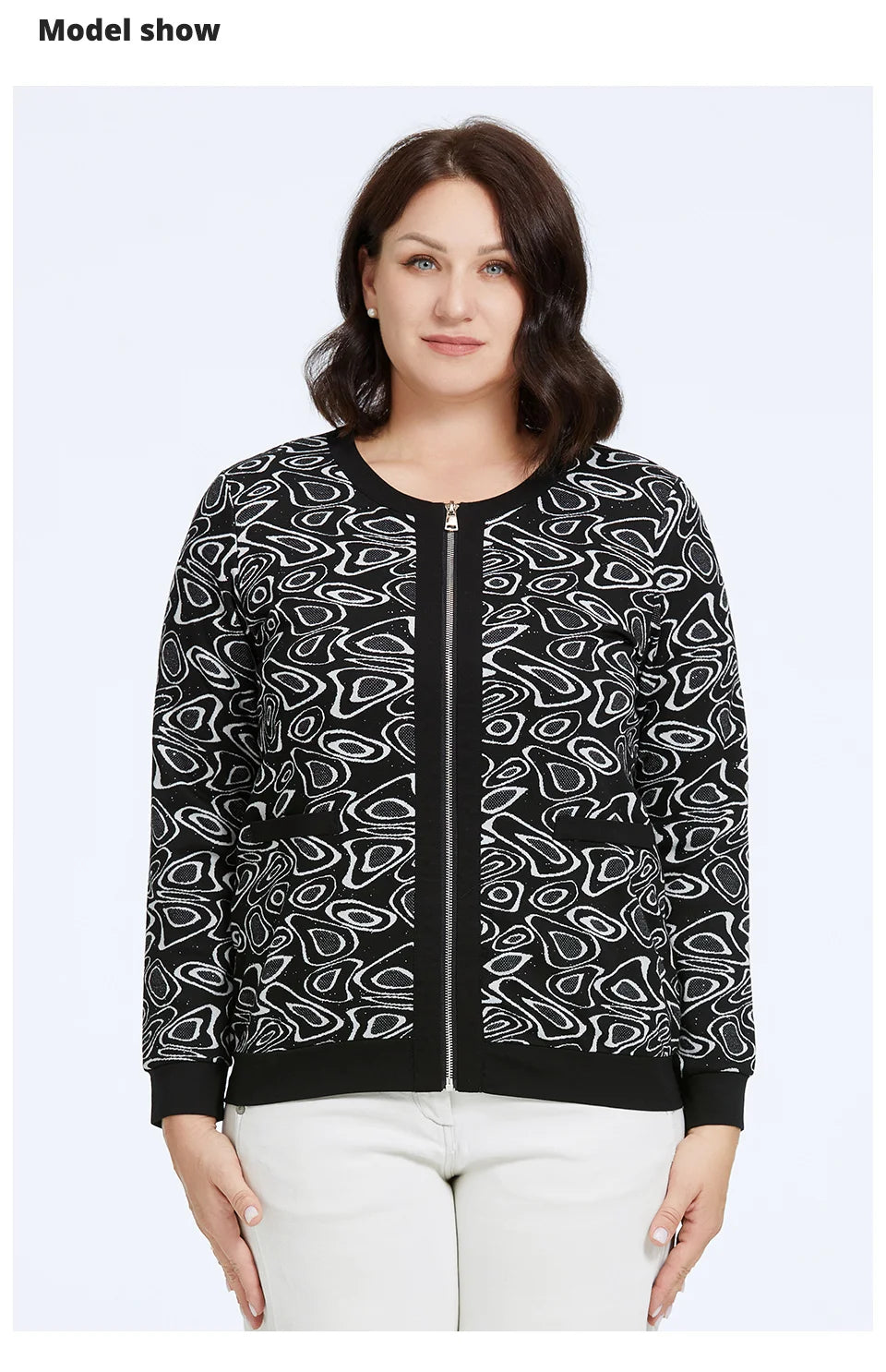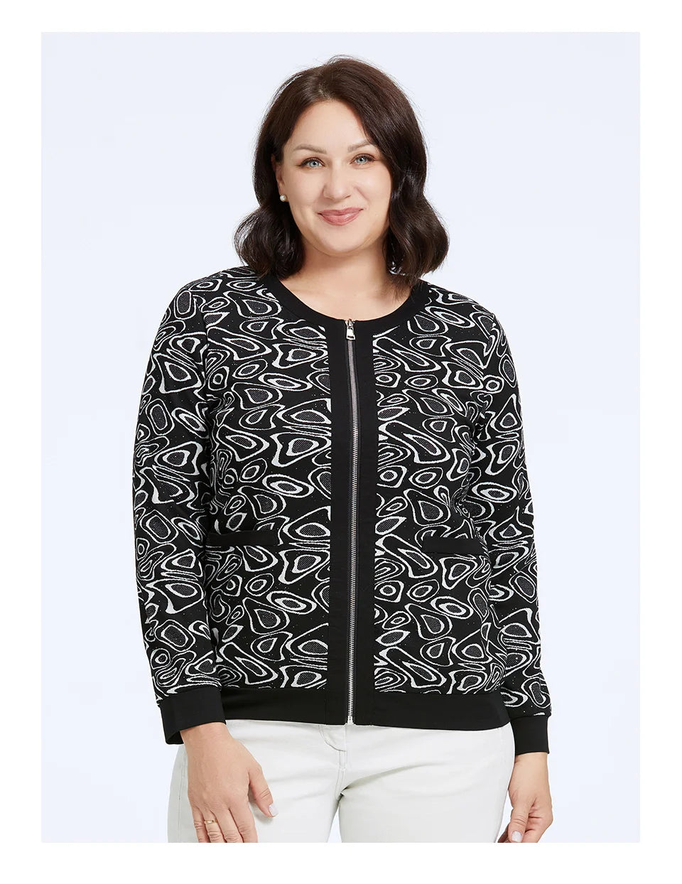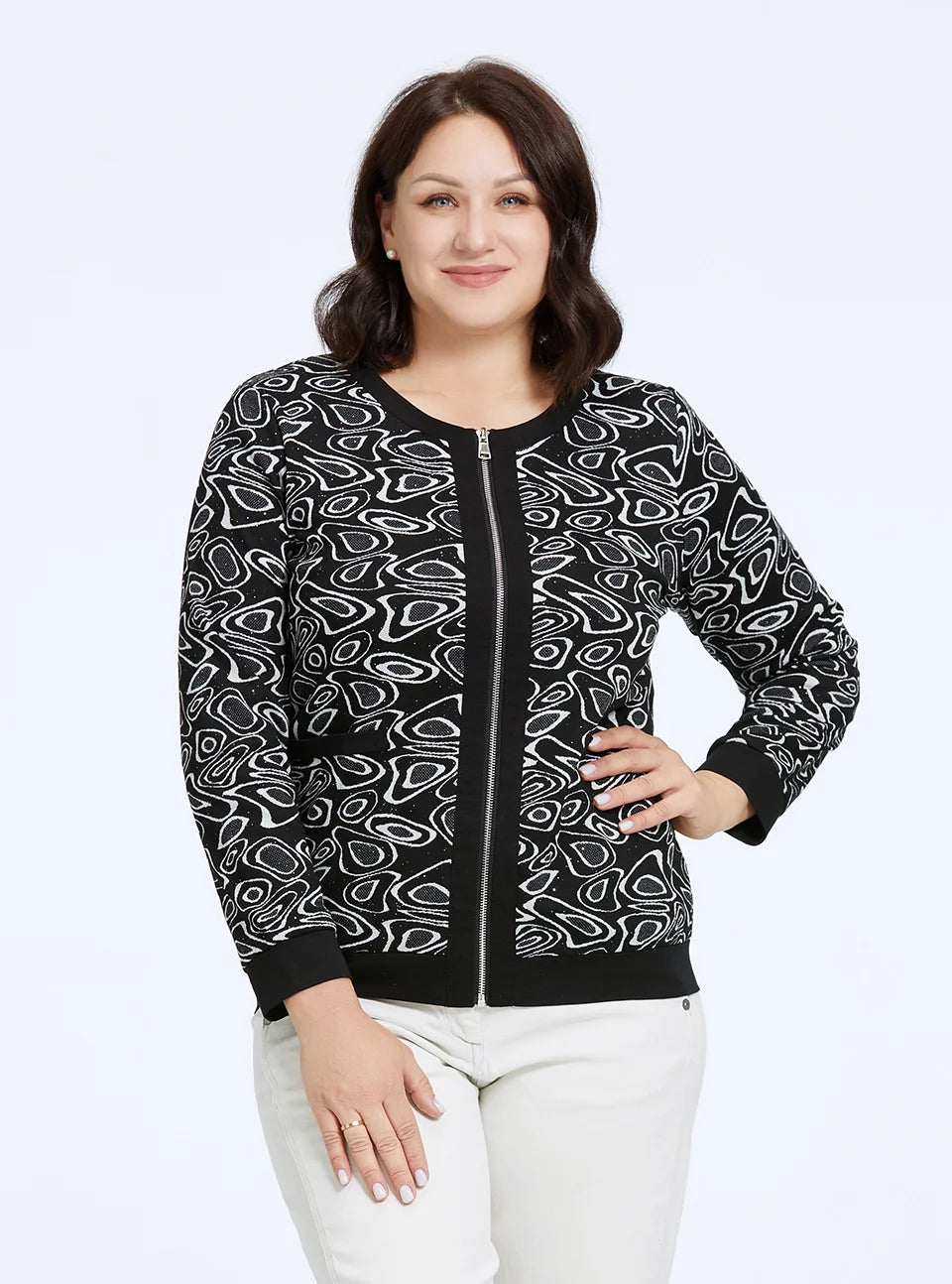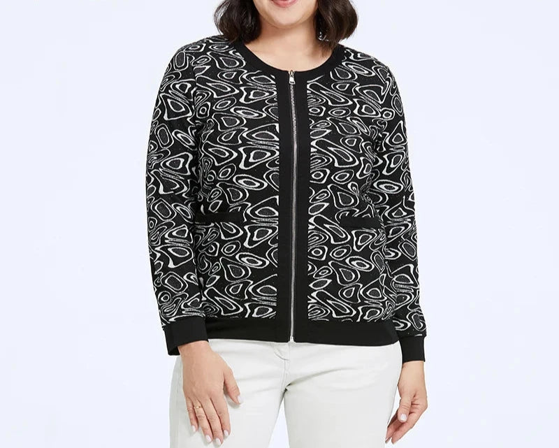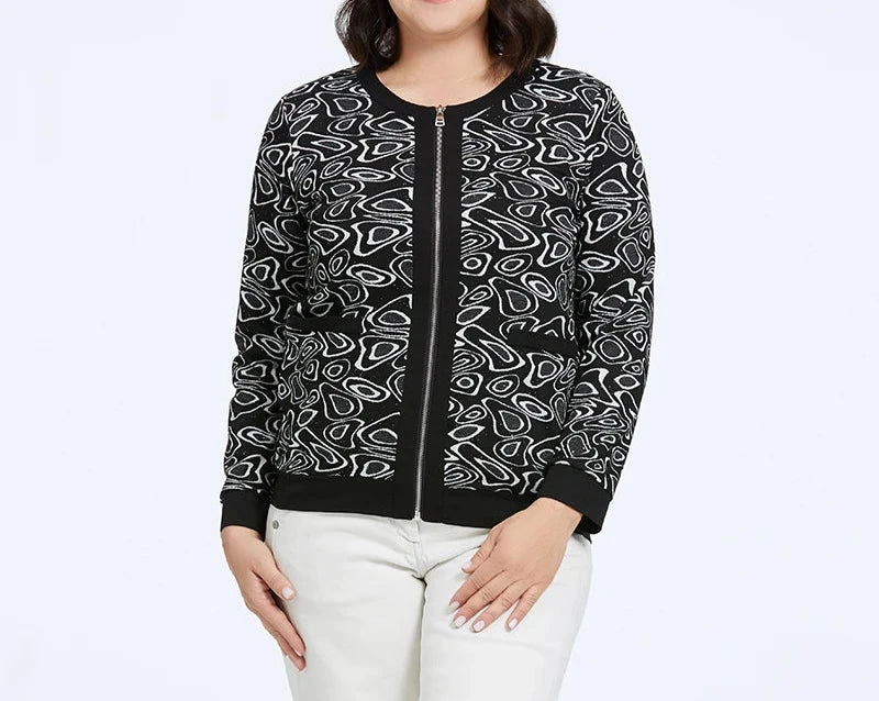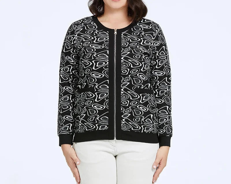 Women's Round Neck Print Windbreaker Zipper Jacket