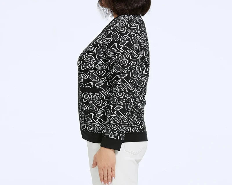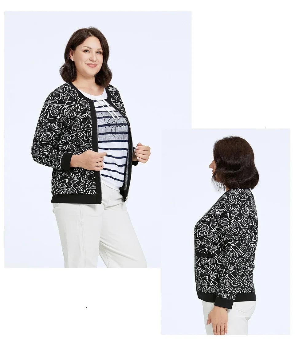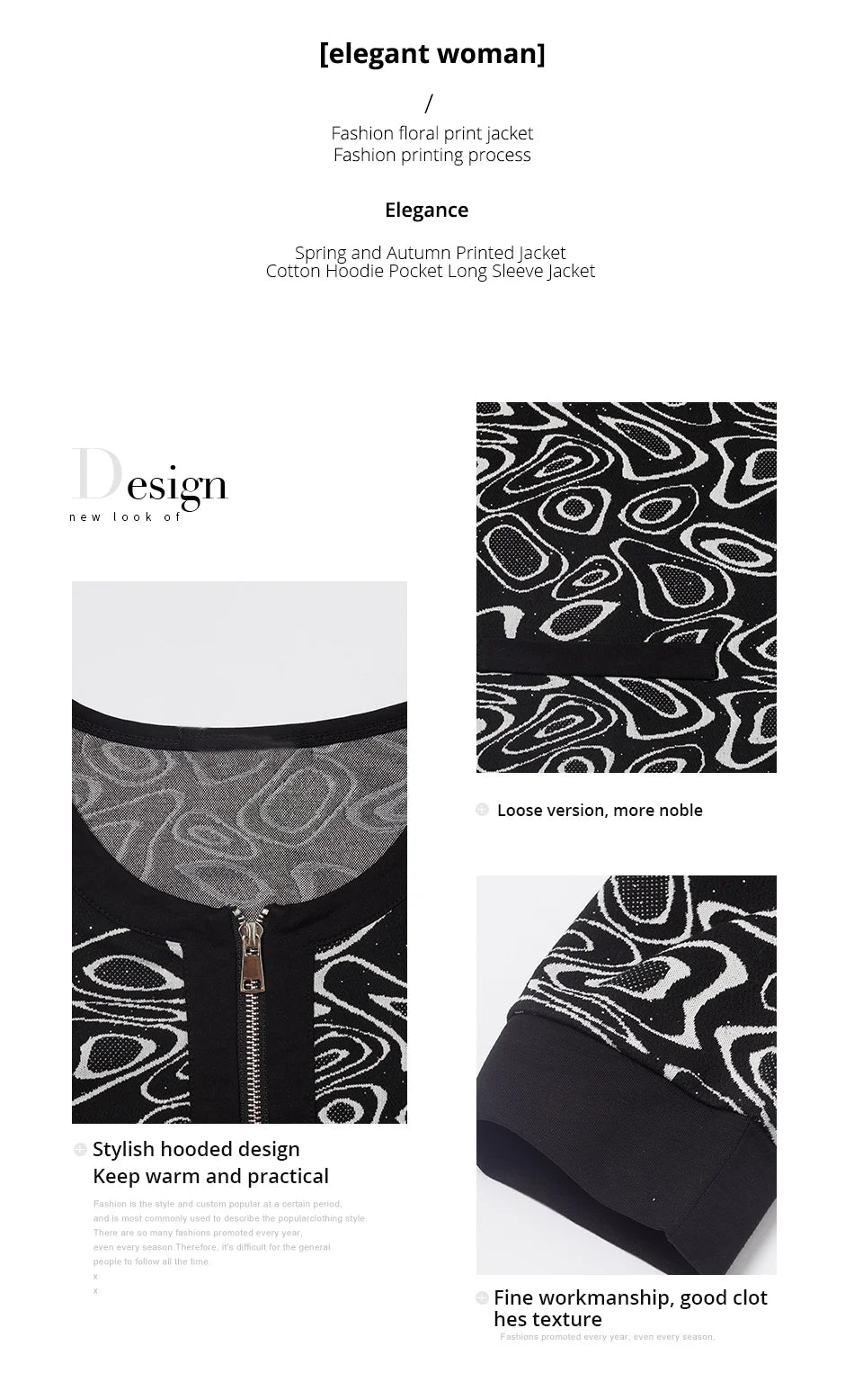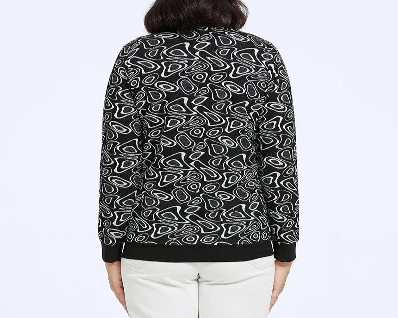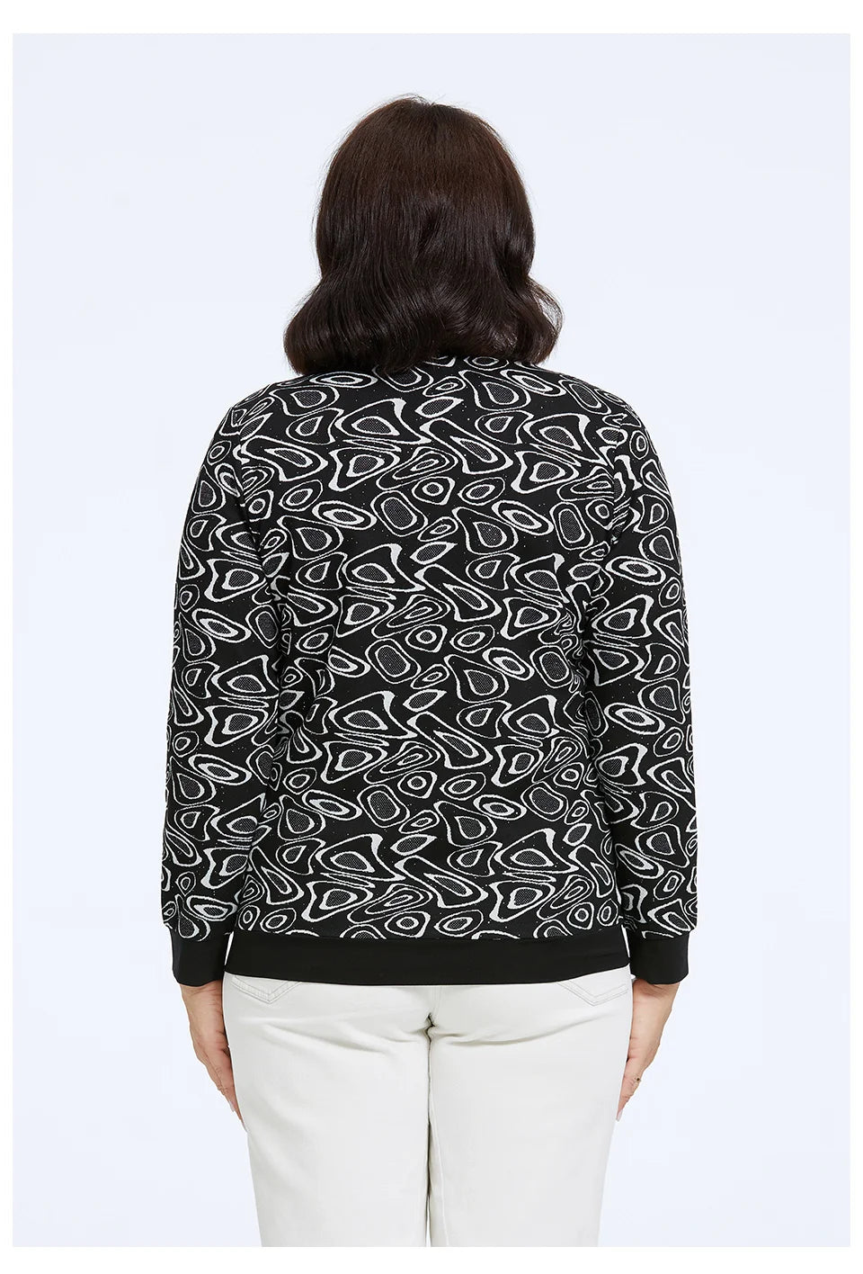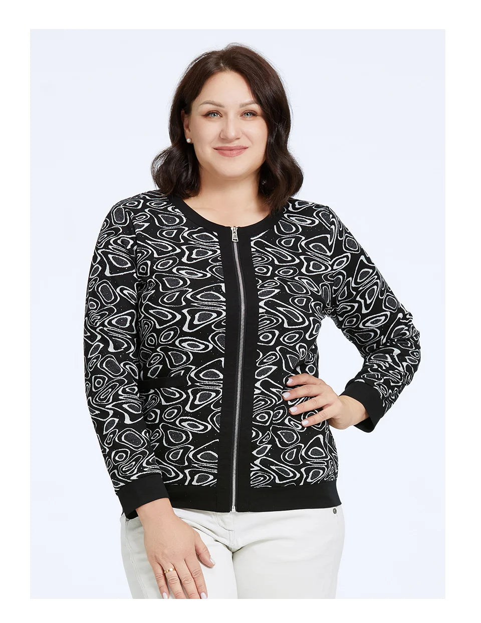 Women's Round Neck Print Windbreaker Zipper Jacket