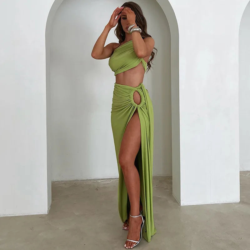 Women's Ruched High Rise Party Sleeveless Asymmetric Bandage 2 Piece Set