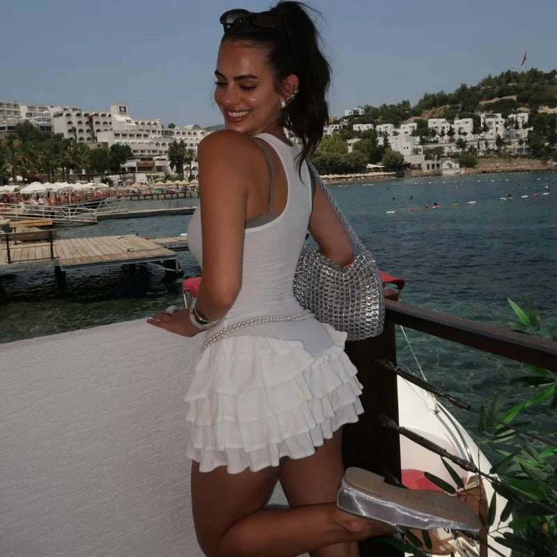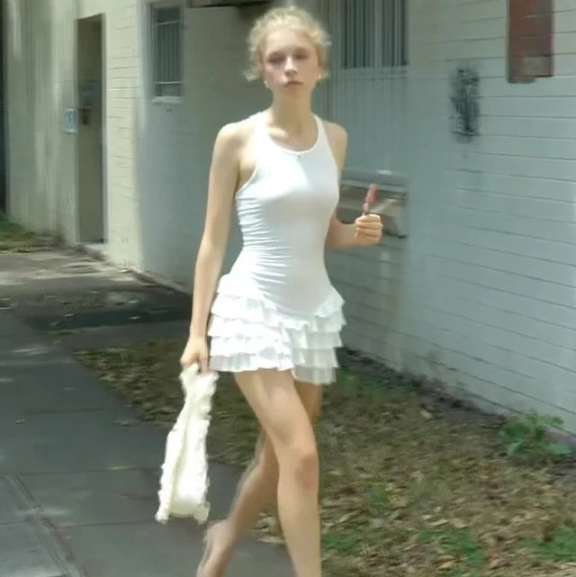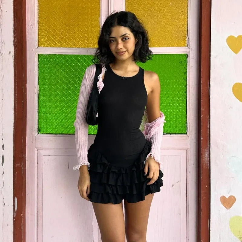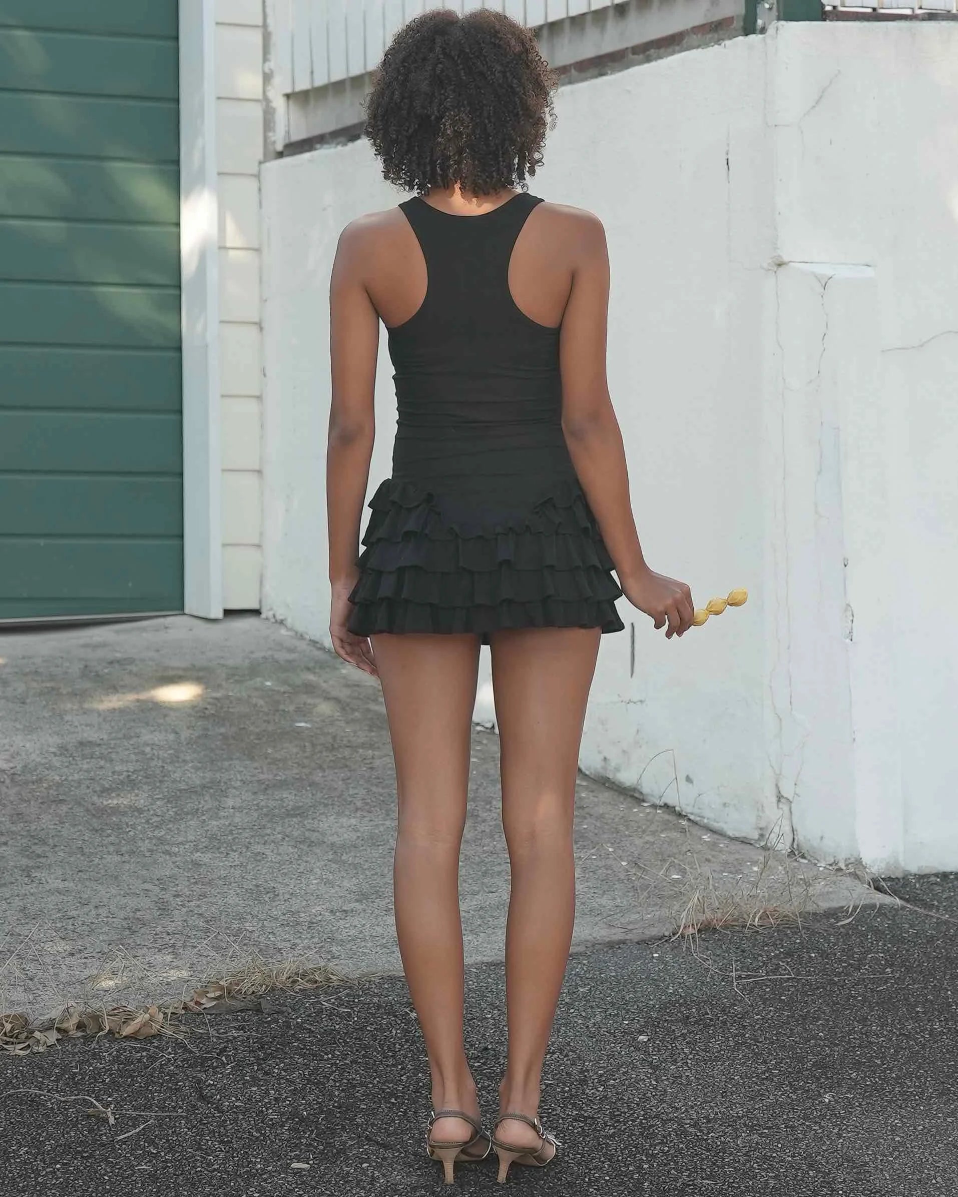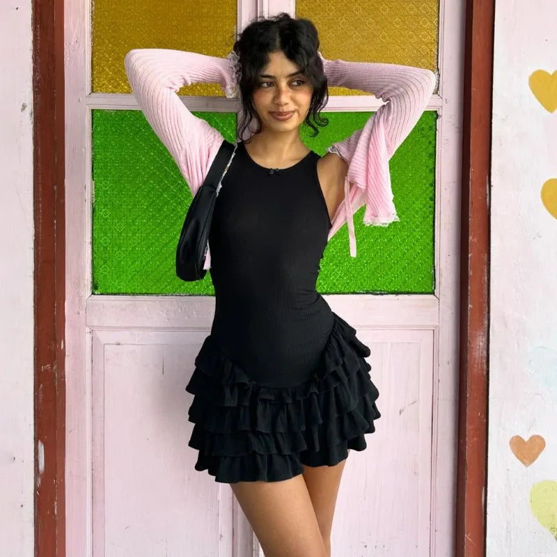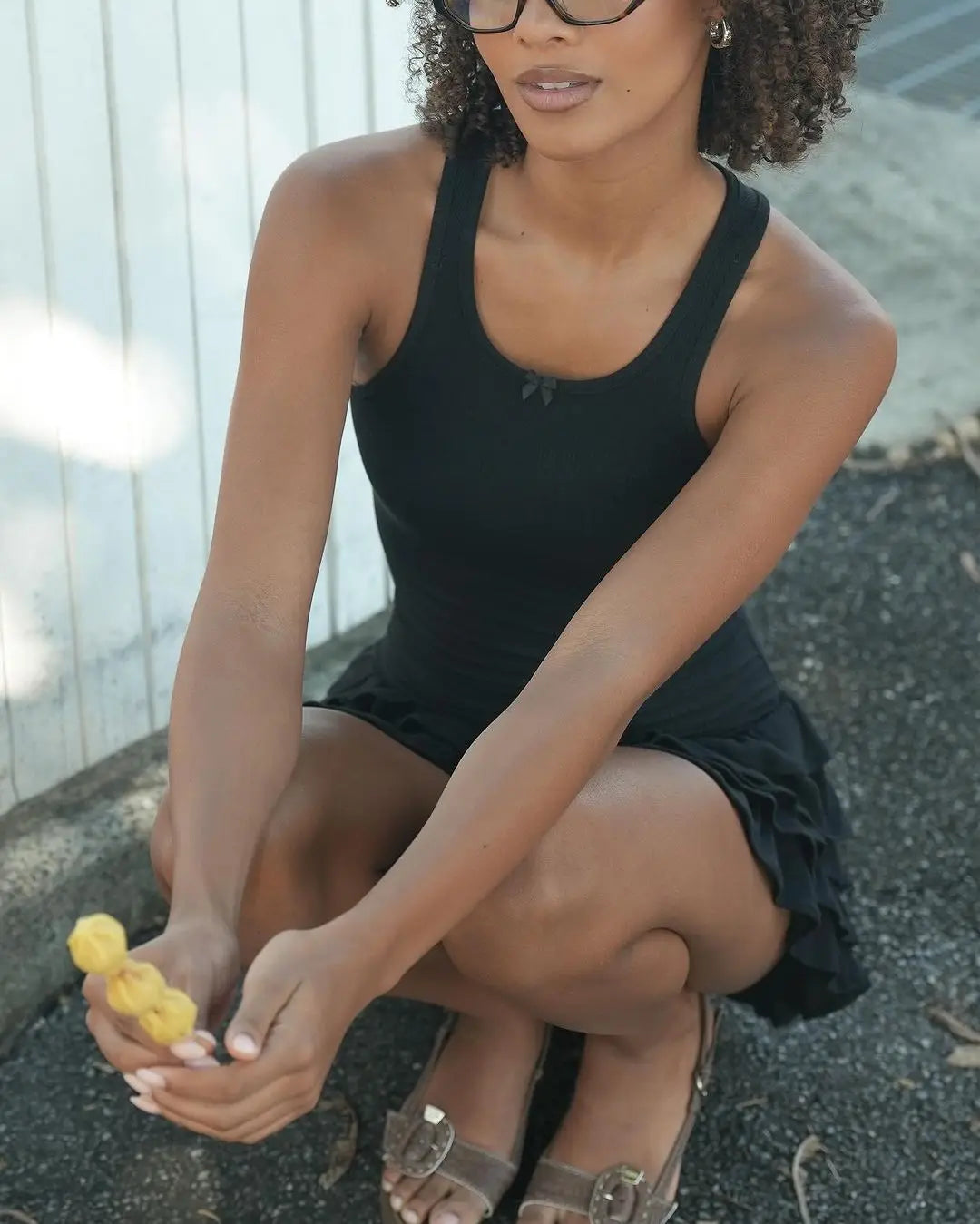 Women's Ruffle Tiered Vest Bow Patchwork Sleeveless Dress